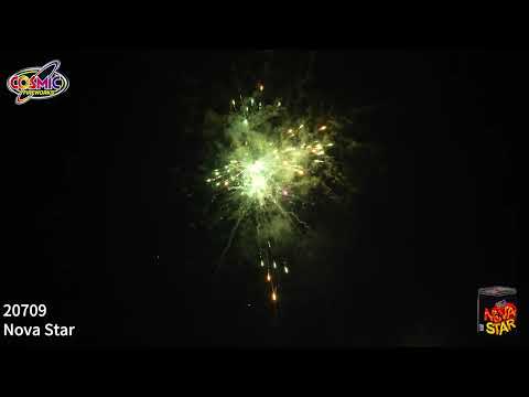Cosmic fireworksA pack of 5 single shot roman candles ejecting either bursts of red or green stars with silver strobe, coloured waves effects or brocades with chr...