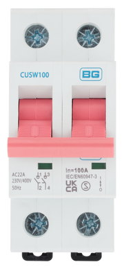 BG Circuit Protection Main Switch Isolator - Double Pole, 100A 2 module