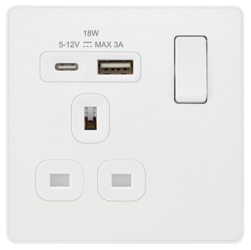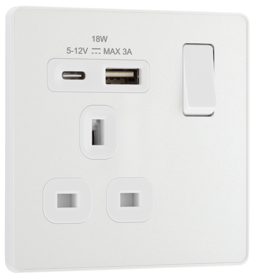 View full detailsBG Electrical Evolve Pearlescent White - Single, switched, single pole, with 1 x USB A + 1 x USB C