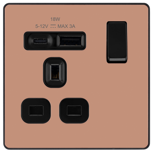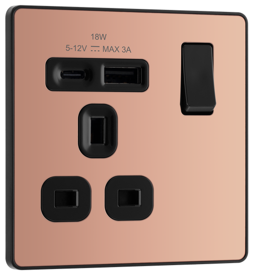 View full detailsBG Electrical Evolve Polished Copper - Single, switched, single pole, with 1 x USB A + 1 x USB C