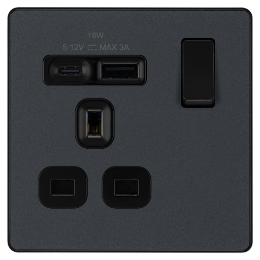 View full detailsBG Electrical Evolve Matt Grey - Single, switched, single pole, with 1 x USB A + 1 x USB C