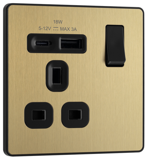 View full detailsBG Electrical Evolve Satin Brass - Single, switched, single pole, with 1 x USB A + 1 x USB C