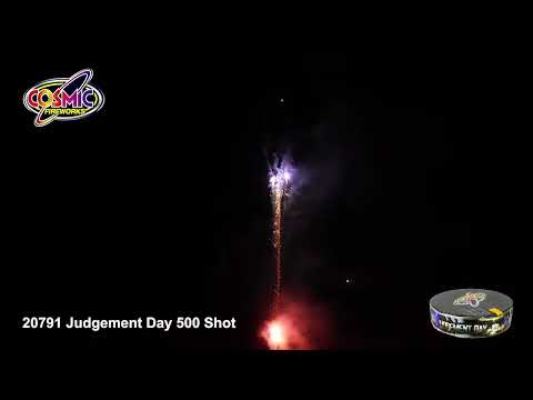 Cosmic fireworksA 500 shot cake ejecting an assortment of coloured, crackling and whistling comets and bursts of red and white glitter, gold crackling, purple cra...