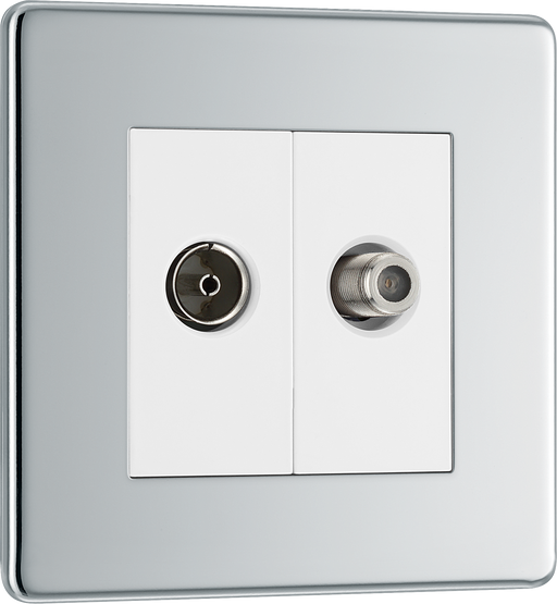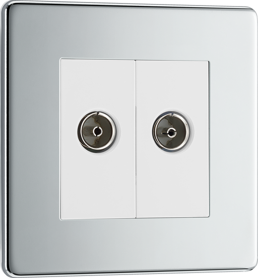 BG Electrical Flatplate Screwless Polished Chrome - Double, isolated, co-axial