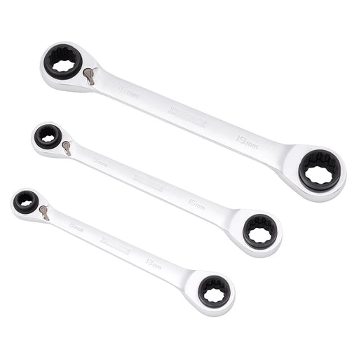 View full detailsDraper 11652 Metric 4-in-1 Reversible Double Ring End Ratchet Spanner Set (3 Piece)