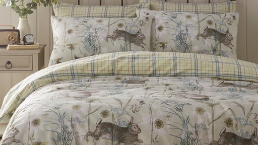 PortfolioRabbit Meadow Sage Single Duvet Cover Set Perfect duvet set for nature and animal lovers. Illustrative rabbits and hares with a check pattern rever...