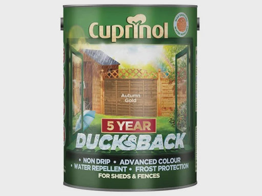 View full detailsCuprinol Ducksback 5 Year Waterproof for Sheds & Fences Harvest Brown 5 litre