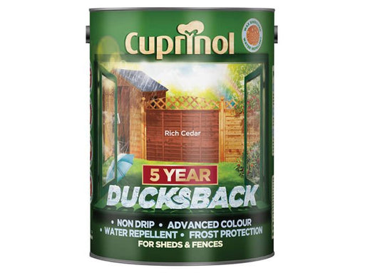 View full detailsCuprinol Ducksback 5 Year Waterproof for Sheds & Fences Rich Cedar 5 litre