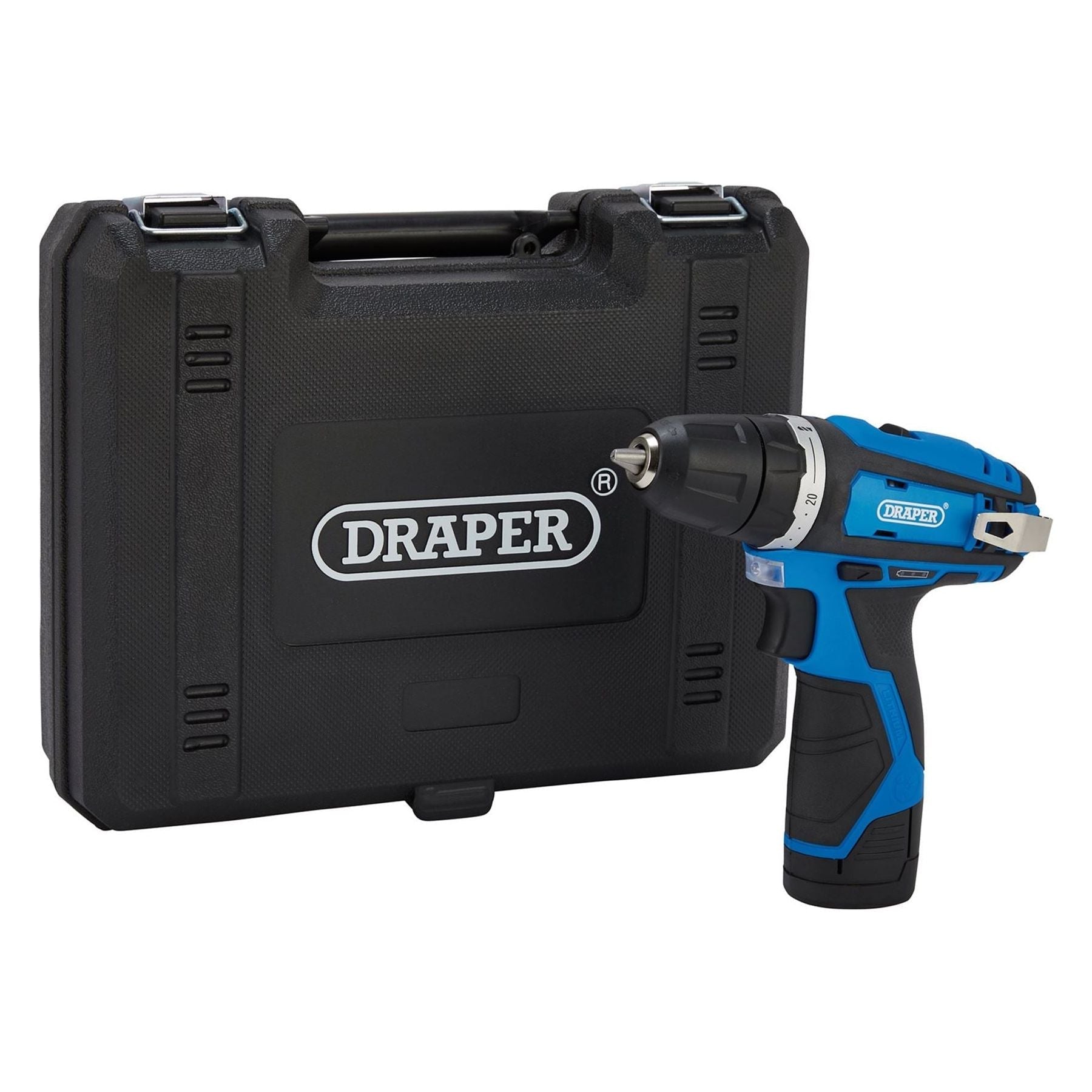 Part of the 12V interchangeable multi-tool battery system. This compact 12V cordless drill driver features a 2-speed gearbox, 21 torque settings (maximum torque 30Nm), spindle lock and a 10mm keyless chuck. It has a variable speed with an electronic brake and forward/reverse. It is fitted with an LED worklight and has a battery level indicator. There is also a handy belt clip. Supplied inside a blow moulded storage case with a 12V 1.5Ah Li-ion battery and charger. Draper 12V interchangeable battery system allows you to combine one battery with any of the tools within the 12V series. It is also fully compatible with the Draper Storm Force 10.8V series.