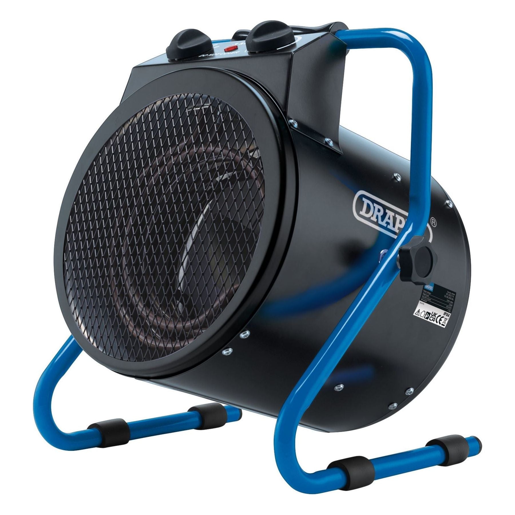 This powerful 2.8kW space heater is designed to raise the ambient temperature in indoor environments and is suitable for domestic and commercial use. Manufactured in steel with a steel tubular frame which can be tilted to direct airflow, the heater has adjustable thermostatic heat control and a fan-only function. The stainless steel heater element is fitted with thermal overload protection for safety. The heater has protective foam feet and a transport handle for easy moving. It comes supplied with a 1.5m cable and three-pin plug.