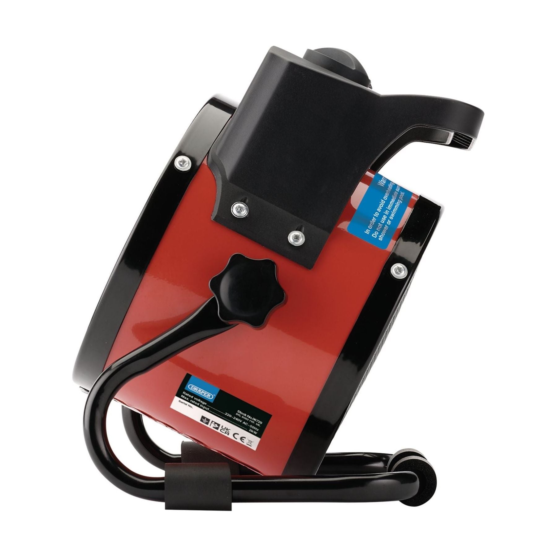 This high output PTC electric space heater is designed to heat enclosed spaces up to 20m2 quickly. There are two heat settings and a built-in adjustable capillary thermostat that is easily set using a dial, to maintain the room temperature at the desired level. It is installed with overload safety protection. The heater and stand is made from high-quality steel, and the direction of heat can be angled and easily locked in position. Fitted with a handle for ease of transportation.