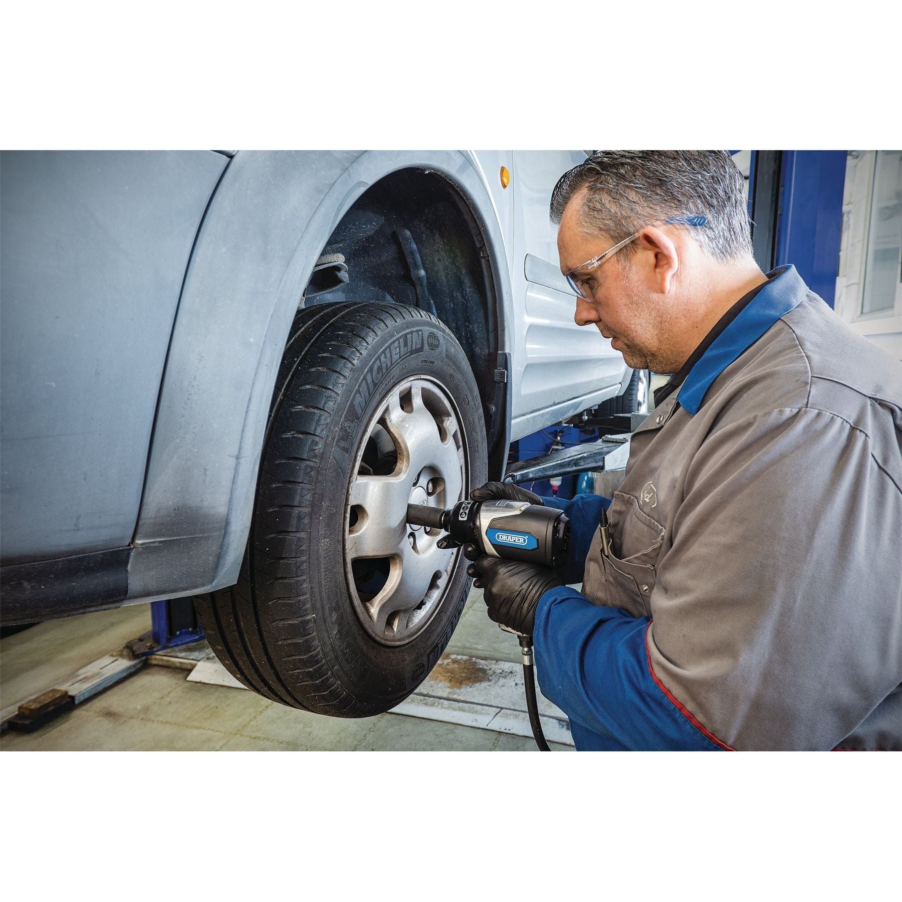 Heavy duty hammer mechanism air impact wrench. Manufactured with a lightweight Aluminium housing attached to an ergonomic soft grip handle providing comfort even when used for prolonged periods. Fitted with a high tech three speed reversible motor capable of 3 - position power in forward and full power in reverse. Attached with a handle exhaust and a 1/4" BSP airline connector.