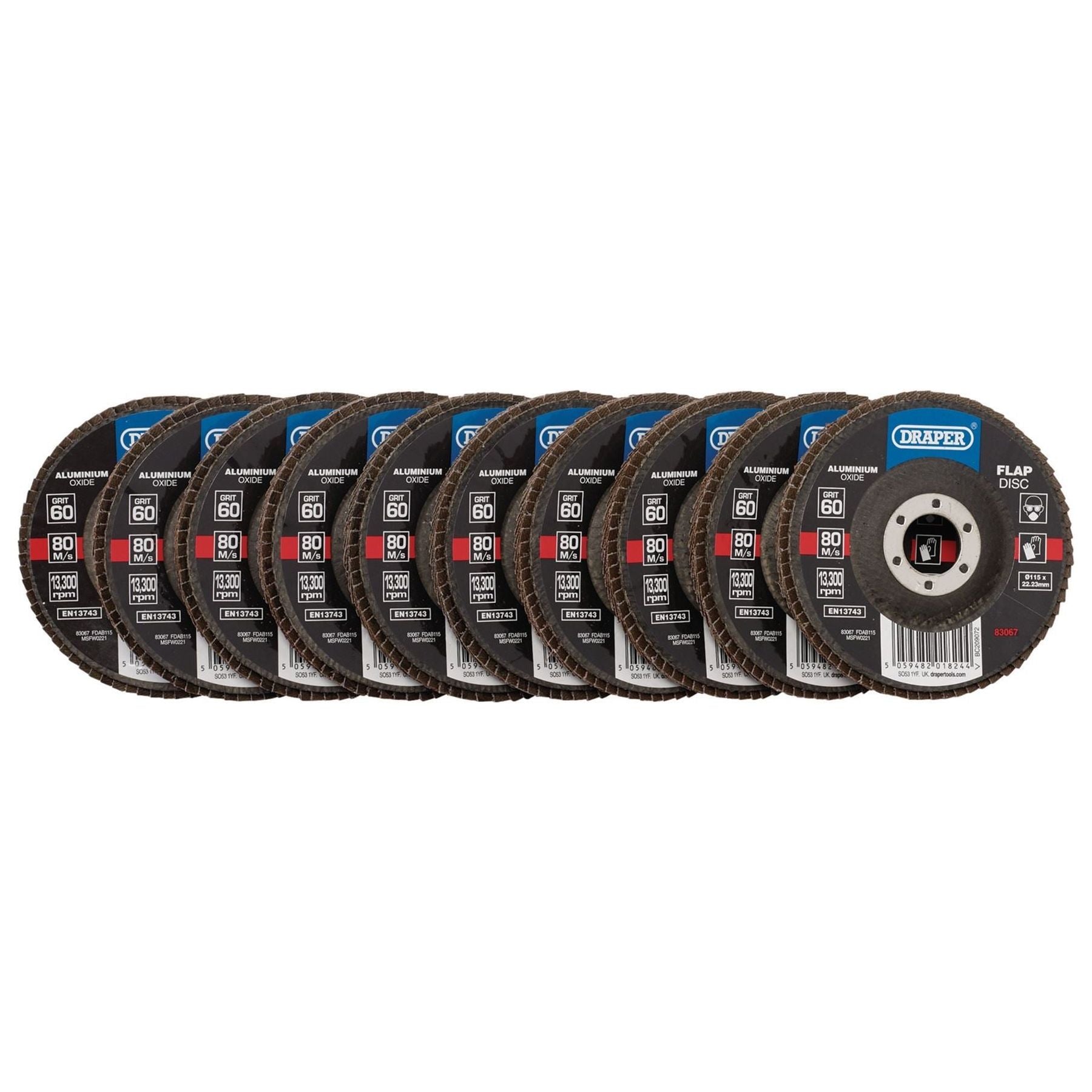 Draper Aluminium Oxide Flap Discs, 115 x 22.23mm, 60 Grit (Pack of 10) 83067