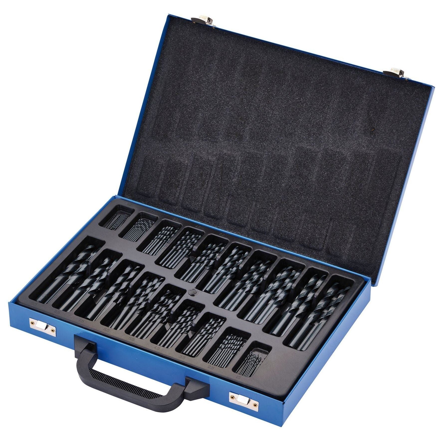 These high speed steel drill bits are fully ground with a 135° split point for precise centring to prevent drill wander. The black oxide coating ensures the drill bits are more durable and resistant to corrosion than standard HSS bits. Draper Black Series drill bits do not need to be used in conjunction with a cooling agent. Suitable for use with metal, wood, chipboard and plastic. Compatible with a standard 10/13mm chuck. Sizes 1.0-10.0mm. Supplied inside a metal case.