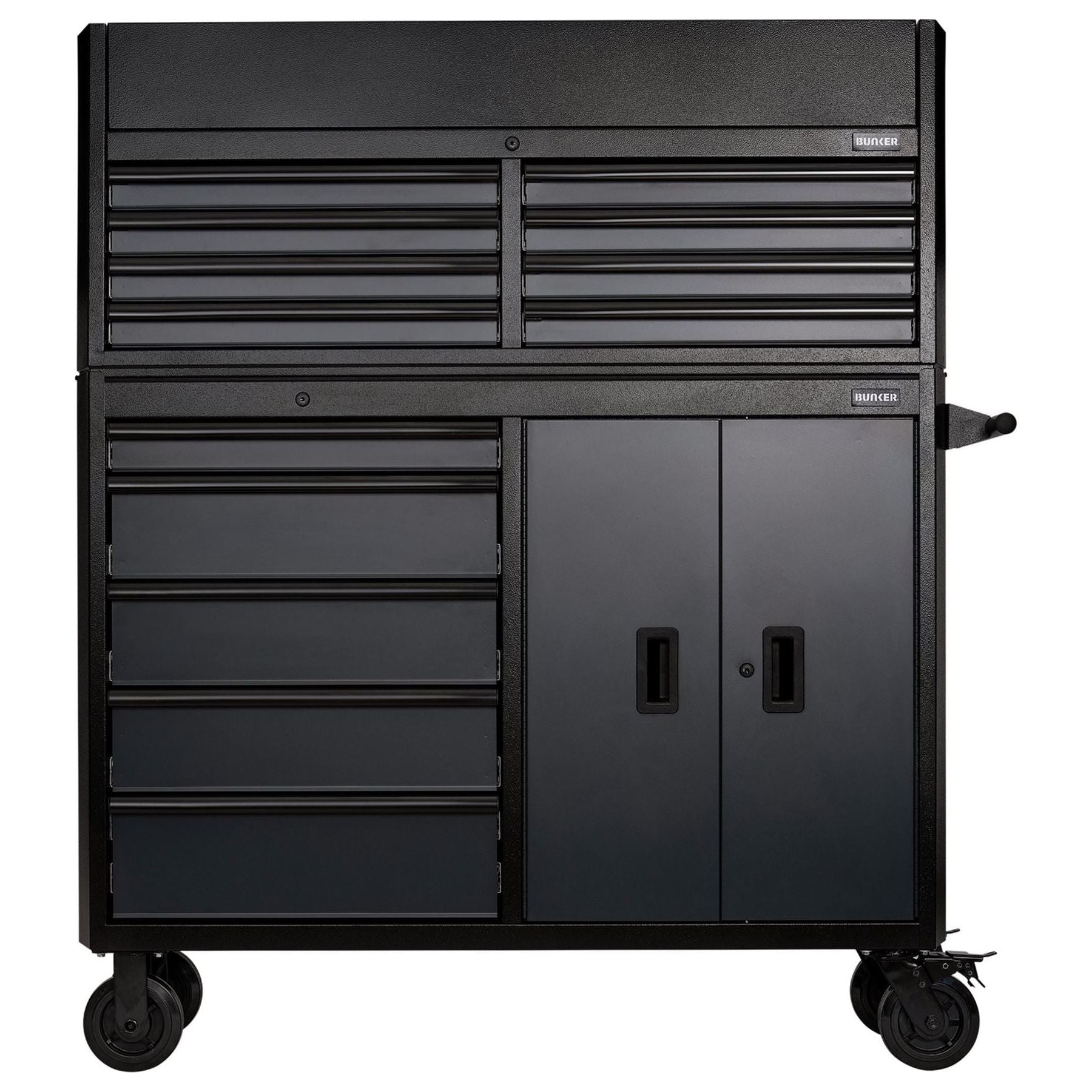 1 x BUNKER Combined Roller Cabinet and Tool Chest, 13 Drawer, 52", Grey