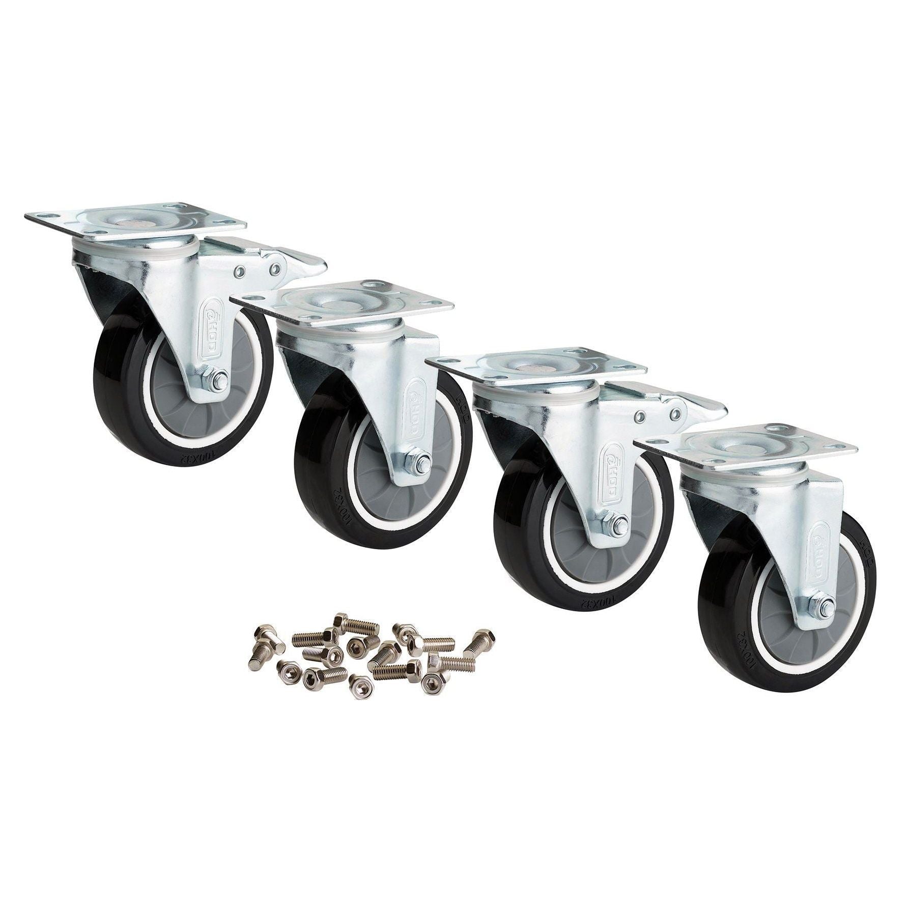 Pack of four swivel castor wheels, two fitted with brakes. Made from strong polyurethane. For durability, the brackets are blue... Read more