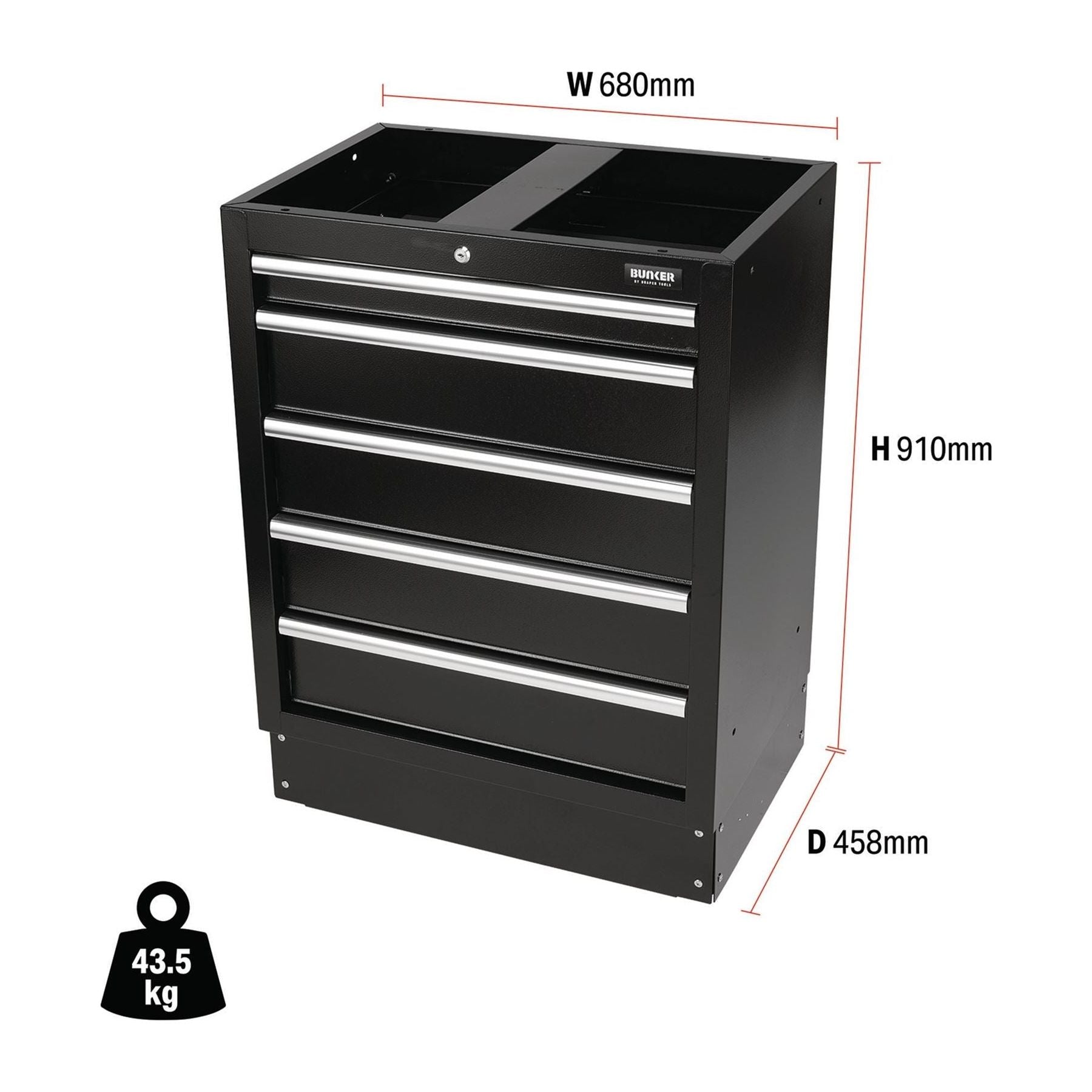 1 x BUNKER® Modular Floor Cabinet, 5 Drawer, 680mm