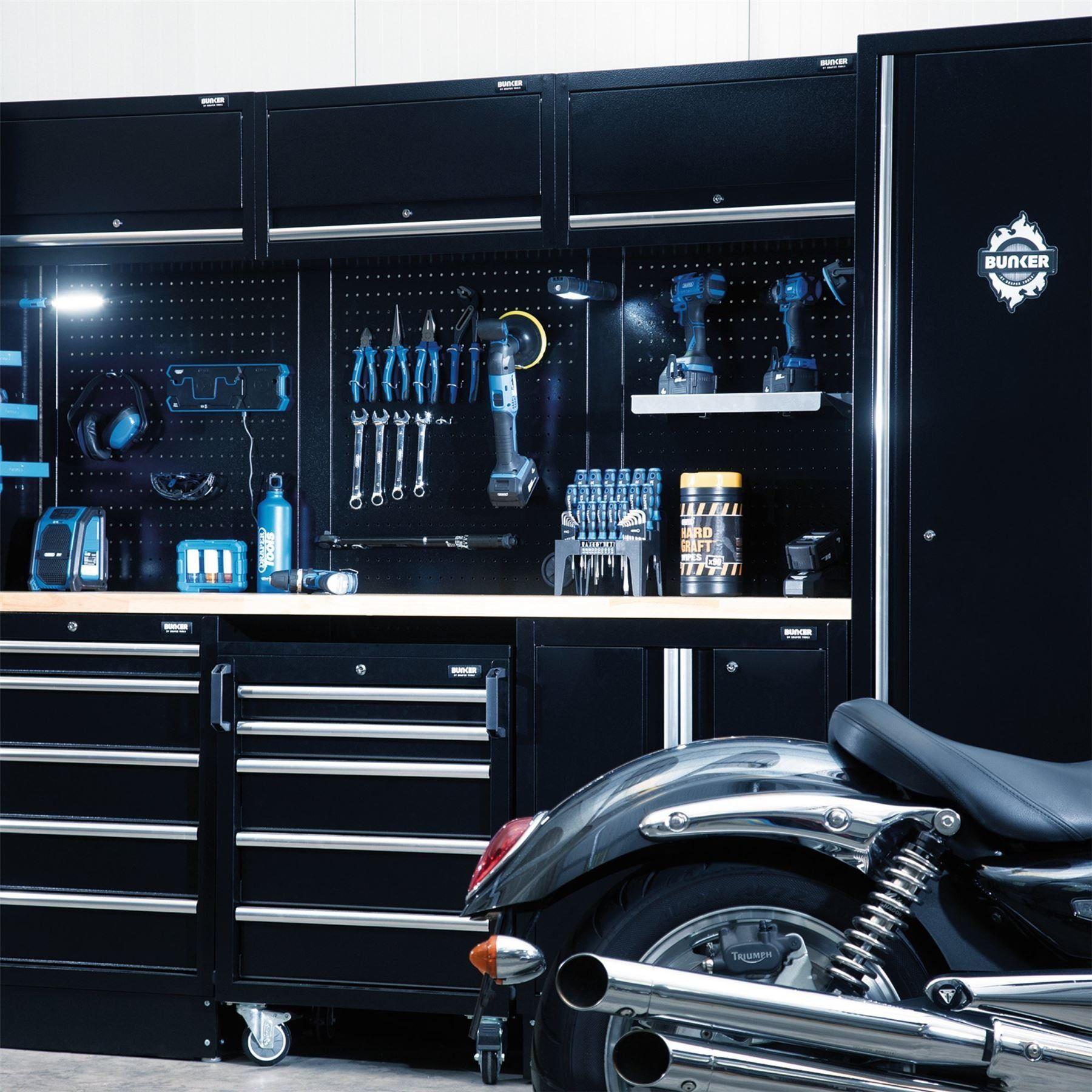 Part of the BUNKER® modular storage system. This stunningly designed premium-quality tall steel cabinet has a single door for easy access. Inside it are four fully adjustable shelves to create incredibly versatile storage. The feet of the cabinet are adjustable for optimal positioning on an uneven floor. The cabinet’s matt black textured finish is highly durable, thanks to the industrial powder coating that protects against scratches, wear and corrosion. There is an integral lock for security and two keys are supplied. The cabinet requires assembly and measures W 600 x H 2,000 x D 458mm. It can be used as an individual storage cabinet or as part of the BUNKER® modular storage system, which includes 24 clever modular options. It comes supplied with all the required fittings for simple installation. For your quality assurance, all BUNKER® units include a 10-year warranty.
