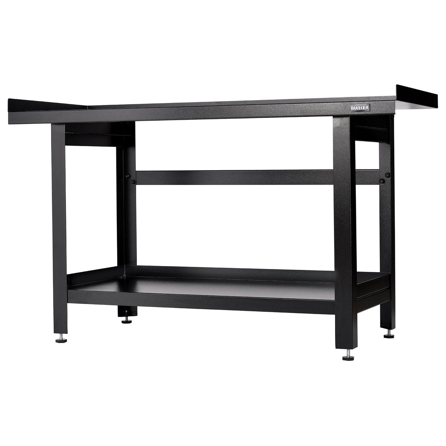 This robust workbench, belonging to the BUNKER storage lineup, is meticulously crafted from high-grade steel. It features a practical worktop and a storage shelf.