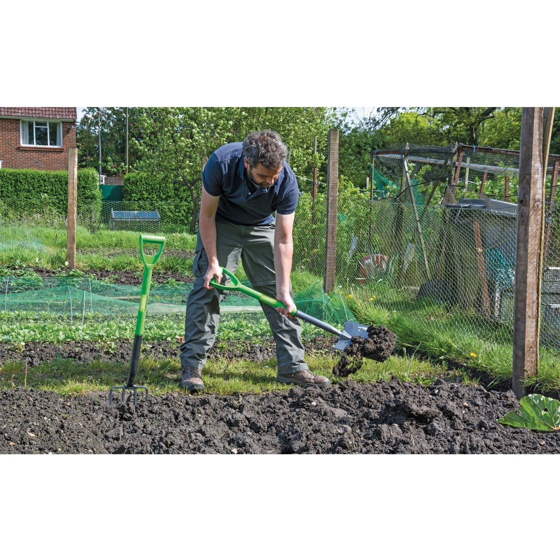 Draper Carbon Steel Garden Fork and Spade Set, Green 16566