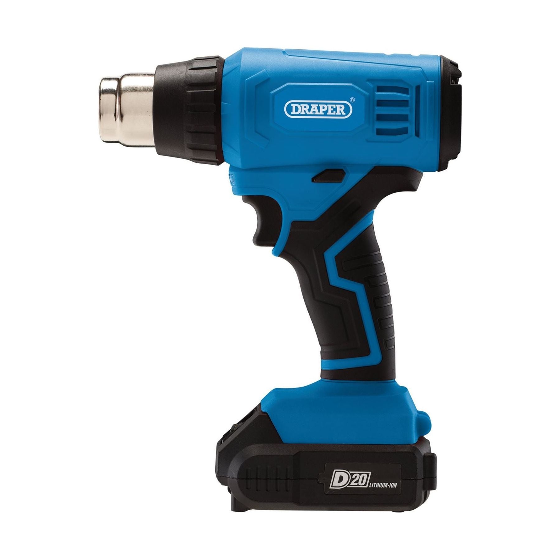 Part of the D20 multi-tool battery system. This cordless heat gun is ready to use within five seconds. The built-in cellular heat technology is electronically controlled using the trigger switch and there is a safety switch with overload protection. Fitted with an integrated LED worklight and comfortable soft grip for ease of use. Supplied with three accessory nozzles. D20 batteries and charger available separately. The D20 interchangeable battery system allows you to combine the same battery/batteries with any of the tools within the D20 series.