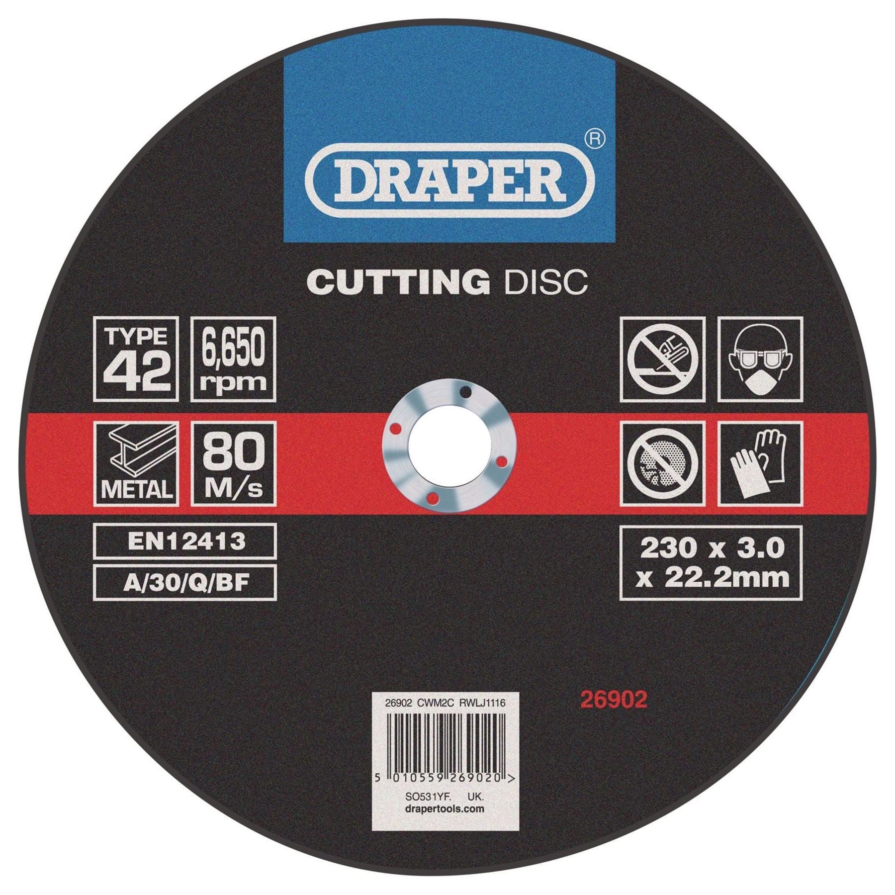 Draper Depressed Centre Metal Cutting Discs, 230 x 3.0 x 22.2mm 26902