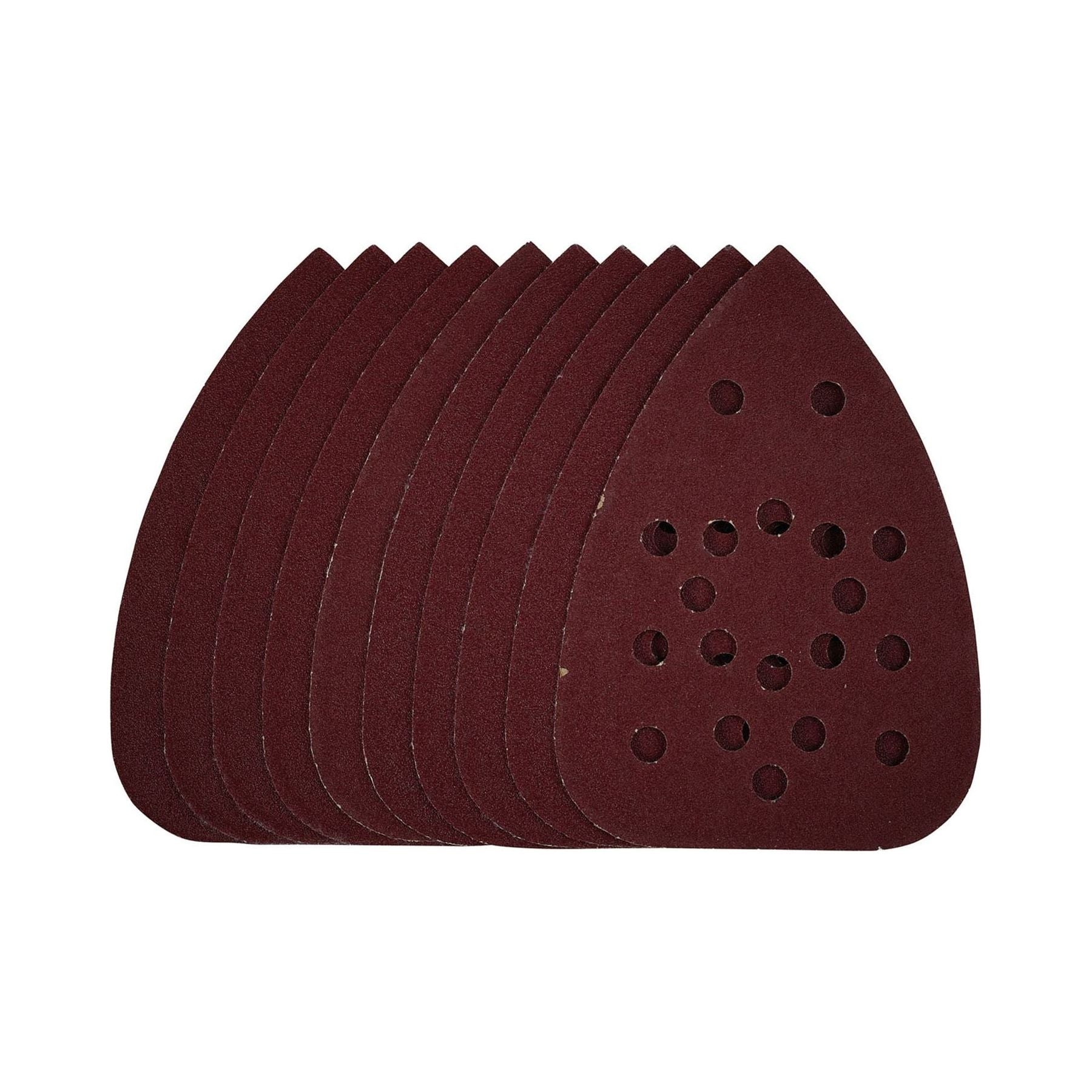 This pack of 140mm detail sanding sheets are made from premium quality aluminium oxide that is resin bonded to provide improved grain adhesion, anti-static qualities and long-lasting performance. The heavy-duty E-Weight backing paper makes the sanding sheet more durable – able to withstand the toughest jobs. The hook and loop backing offers decent adhesion to facilitate the fast changing of sanding sheets. The 19 pre-punched 8mm holes improve dust extraction. Ideal for sanding and finishing wood, metal, aluminium alloy, painted surfaces, plastic and fillers. Compatible with most detail sanders with 140mm hook and loop backing pads including Stock No. 02063.