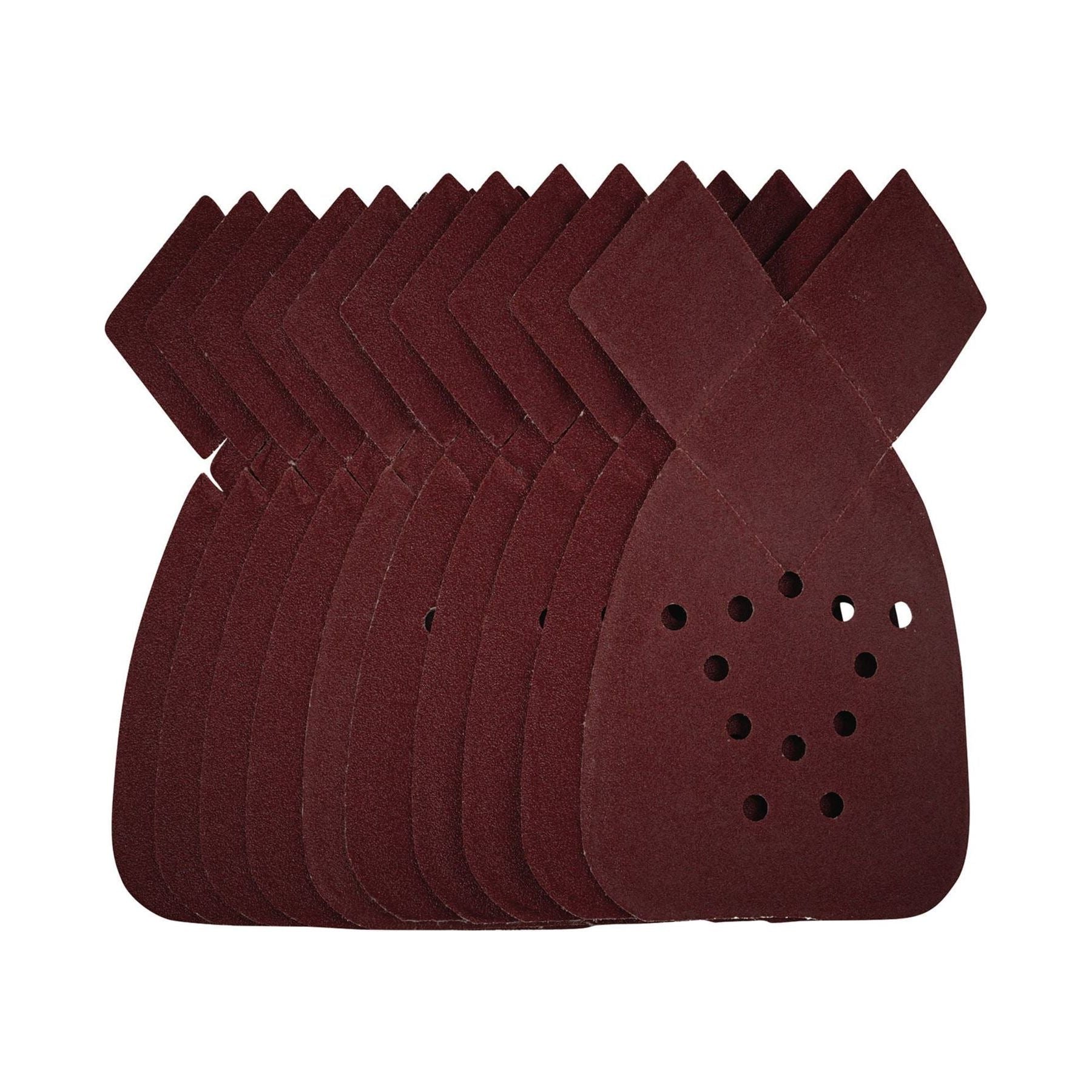 This pack of 140mm detail sanding sheets have extra perforated tear-off diamonds for increased detail sanding. Made from premium quality aluminium oxide that is resin bonded to provide improved grain adhesion, anti-static qualities and long-lasting performance. The heavy-duty E-Weight backing paper makes the sanding sheet more durable – able to withstand the toughest jobs. The hook and loop backing offers decent adhesion to facilitate the fast changing of sanding sheets. The 12 pre-punched 6mm holes improve dust extraction. Ideal for sanding and finishing wood, metal, aluminium alloy, painted surfaces, plastic and fillers. Compatible with most detail sanders with 140mm hook and loop backing pads.