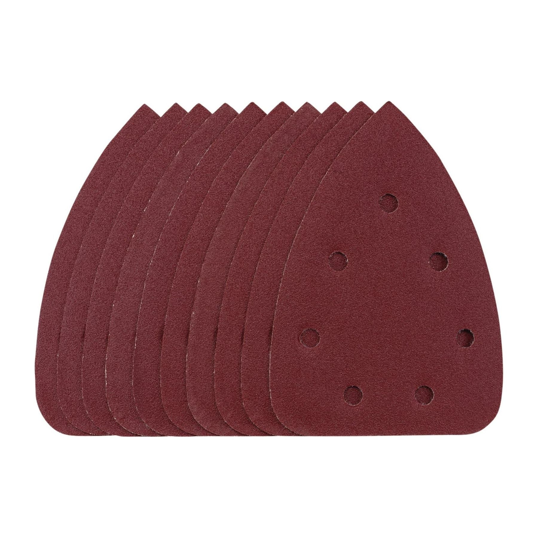 This pack of 140mm detail sanding sheets are made from premium quality aluminium oxide that is resin bonded to provide improved grain adhesion, anti-static qualities and long-lasting performance. The heavy-duty E-Weight backing paper makes the sanding sheet more durable – able to withstand the toughest jobs. The hook and loop backing offers decent adhesion to facilitate the fast changing of sanding sheets. The seven pre-punched 8mm holes improve dust extraction. Ideal for sanding and finishing wood, metal, aluminium alloy, painted surfaces, plastic and fillers. Compatible with most detail sanders with 140mm hook and loop backing pads including Stock No. 00608.
