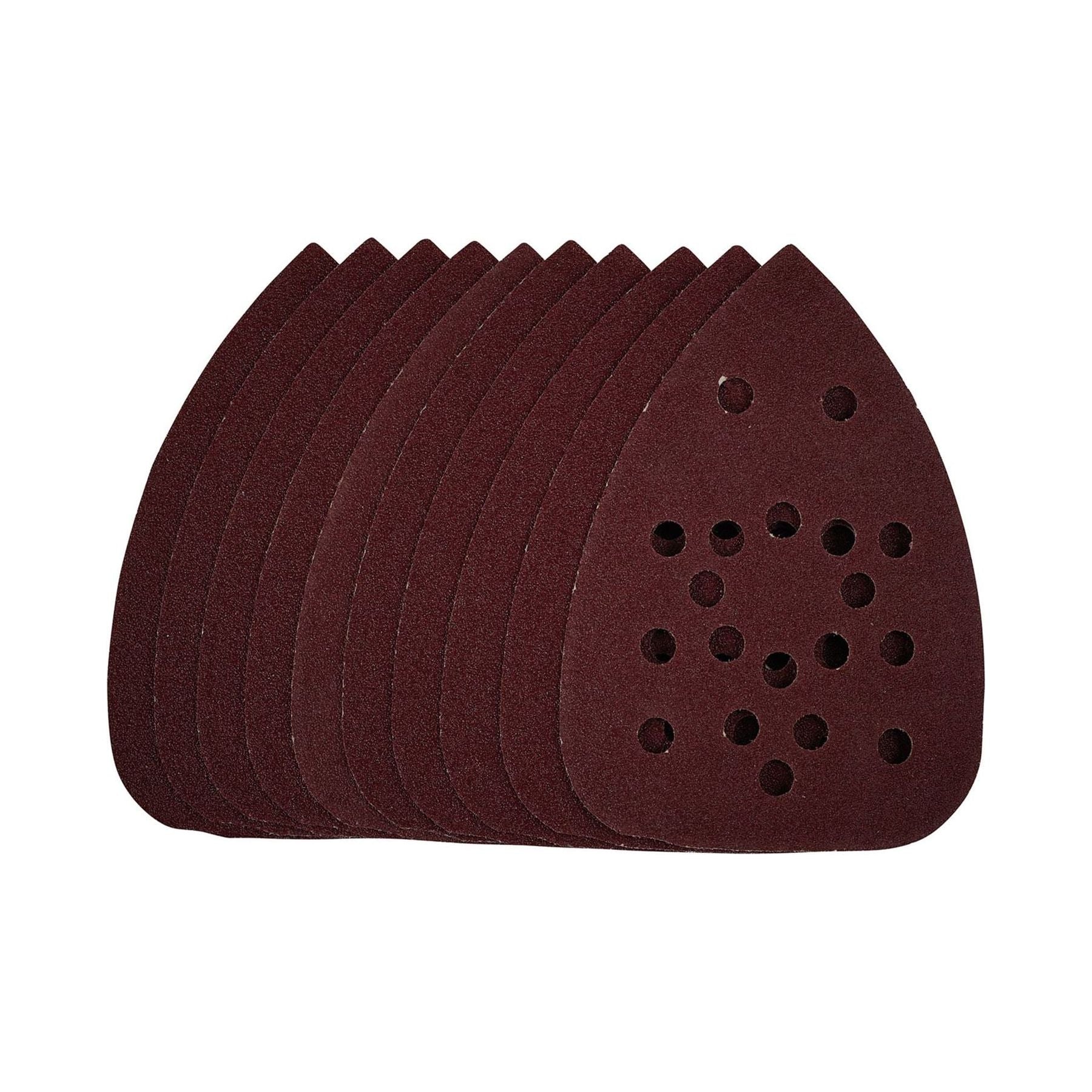 This pack of 140mm detail sanding sheets are made from premium quality aluminium oxide that is resin bonded to provide improved grain adhesion, anti-static qualities and long-lasting performance. The heavy-duty E-Weight backing paper makes the sanding sheet more durable – able to withstand the toughest jobs. The hook and loop backing offers decent adhesion to facilitate the fast changing of sanding sheets. The 19 pre-punched 8mm holes improve dust extraction. Ideal for sanding and finishing wood, metal, aluminium alloy, painted surfaces, plastic and fillers. Compatible with most detail sanders with 140mm hook and loop backing pads including Stock No. 02063.