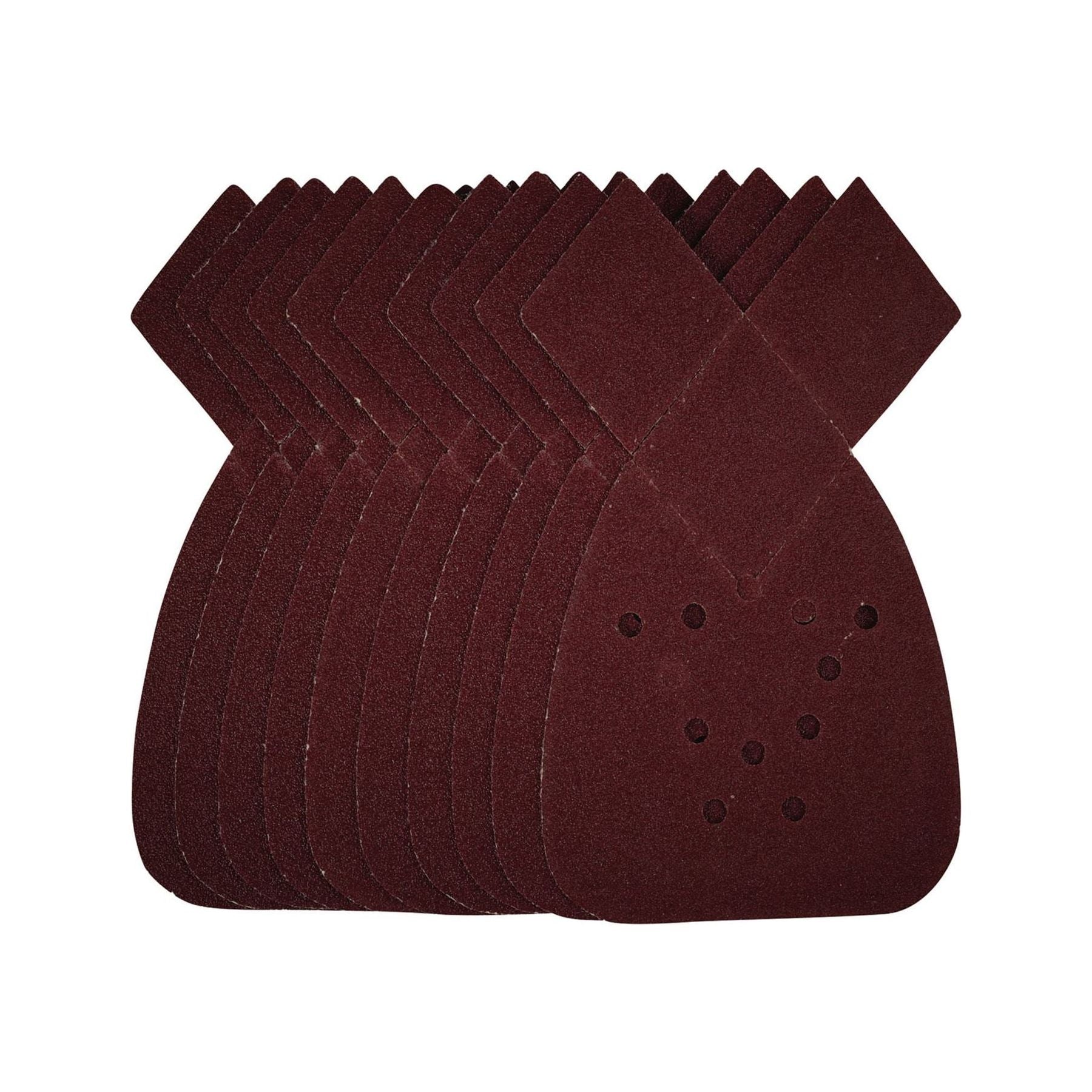 This pack of 140mm detail sanding sheets have extra perforated tear-off diamonds for increased detail sanding. Made from premium quality aluminium oxide that is resin bonded to provide improved grain adhesion, anti-static qualities and long-lasting performance. The heavy-duty E-Weight backing paper makes the sanding sheet more durable – able to withstand the toughest jobs. The hook and loop backing offers decent adhesion to facilitate the fast changing of sanding sheets. The 12 pre-punched 6mm holes improve dust extraction. Ideal for sanding and finishing wood, metal, aluminium alloy, painted surfaces, plastic and fillers. Compatible with most detail sanders with 140mm hook and loop backing pads.