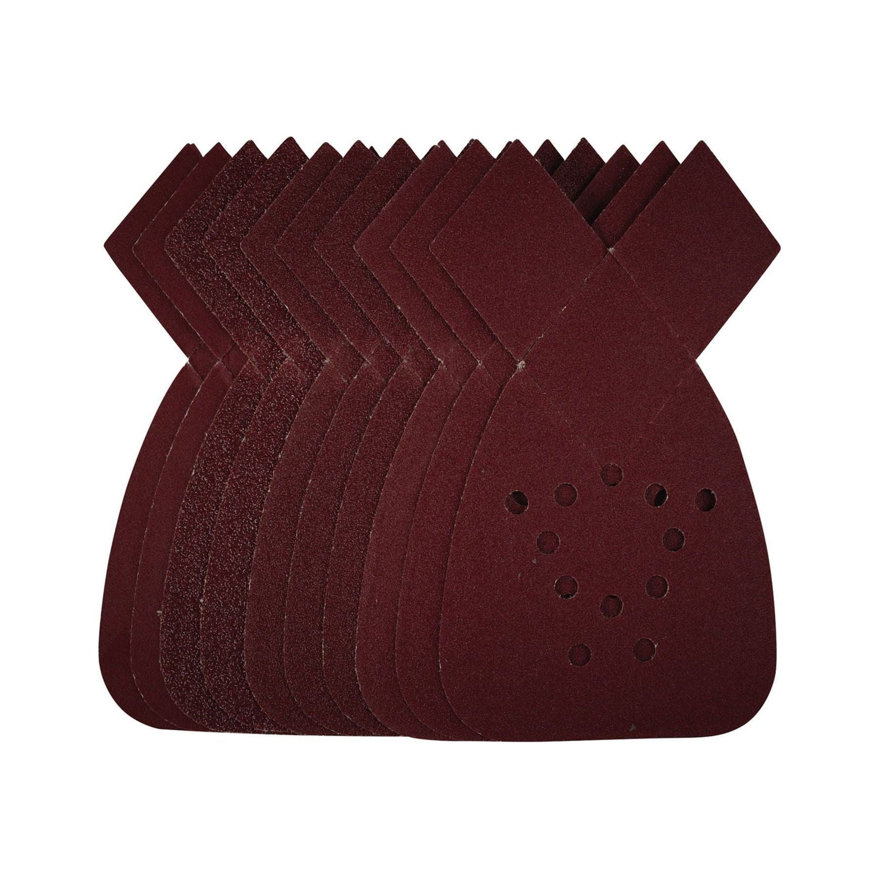 This pack of 140mm detail sanding sheets have extra perforated tear-off diamonds for increased detail sanding. Made from premium quality aluminium oxide that is resin bonded to provide improved grain adhesion, anti-static qualities and long-lasting performance. The heavy-duty E-Weight backing paper makes the sanding sheet more durable – able to withstand the toughest jobs. The hook and loop backing offers decent adhesion to facilitate the fast changing of sanding sheets. The 12 pre-punched 6mm holes improve dust extraction. Ideal for sanding and finishing wood, metal, aluminium alloy, painted surfaces, plastic and fillers. Compatible with most detail sanders with 140mm hook and loop backing pads.