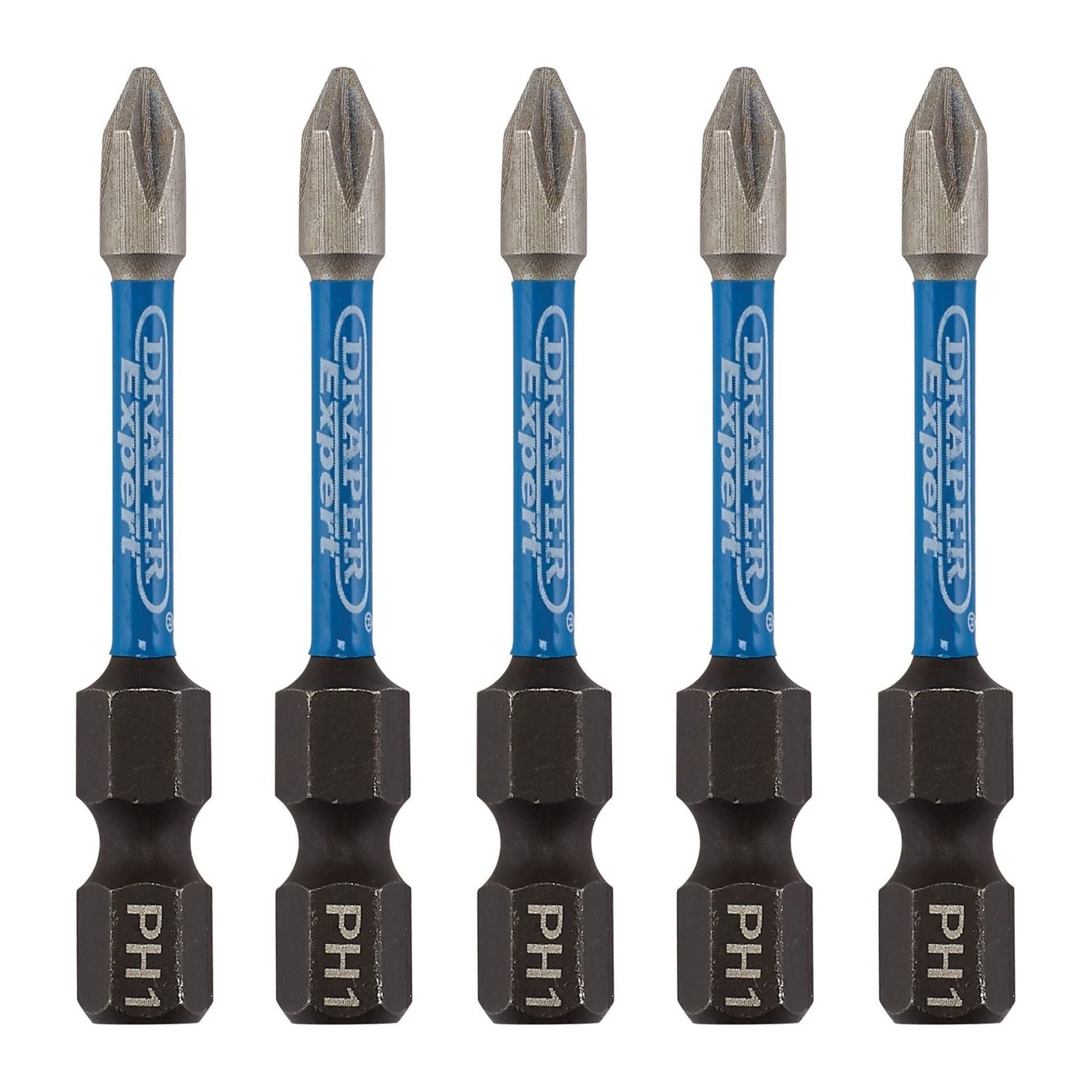 Draper Expert Cross Slot/PH Type Impact Screwdriver Bits, No.1 x 50mm, 1/4" Hex
