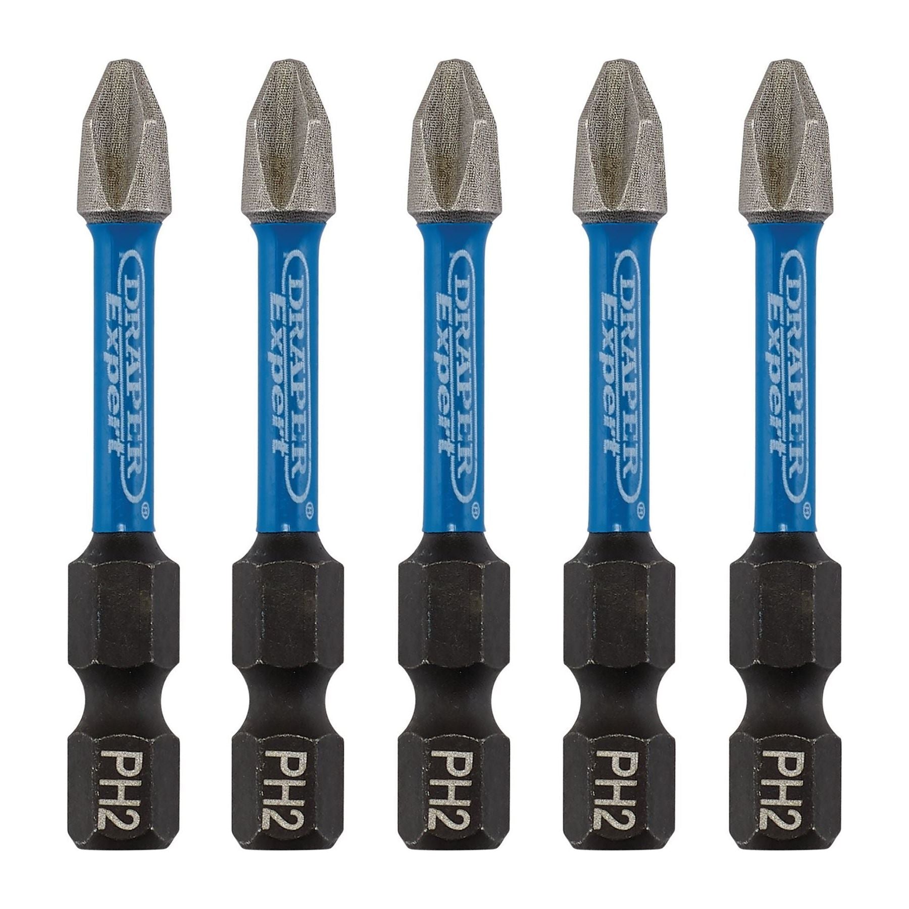 Draper Expert Cross Slot/PH Type Impact Screwdriver Bits, No.2 x 50mm, 1/4" Hex