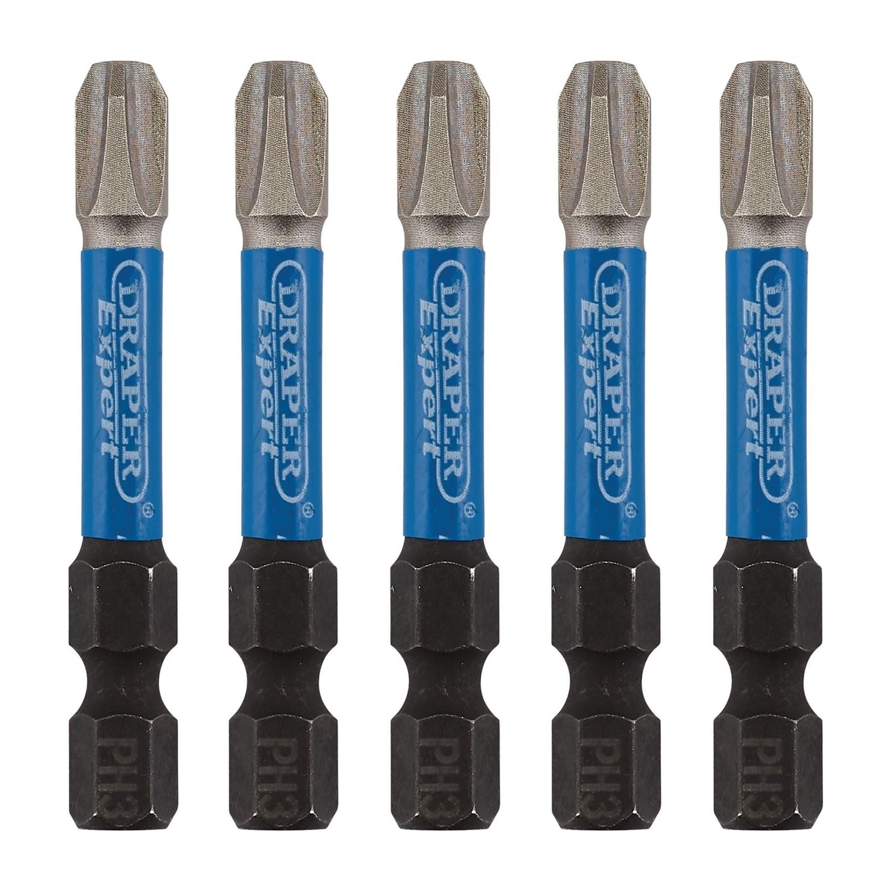 Draper Expert Cross Slot/PH Type Impact Screwdriver Bits, No.3 x 50mm, 1/4" Hex