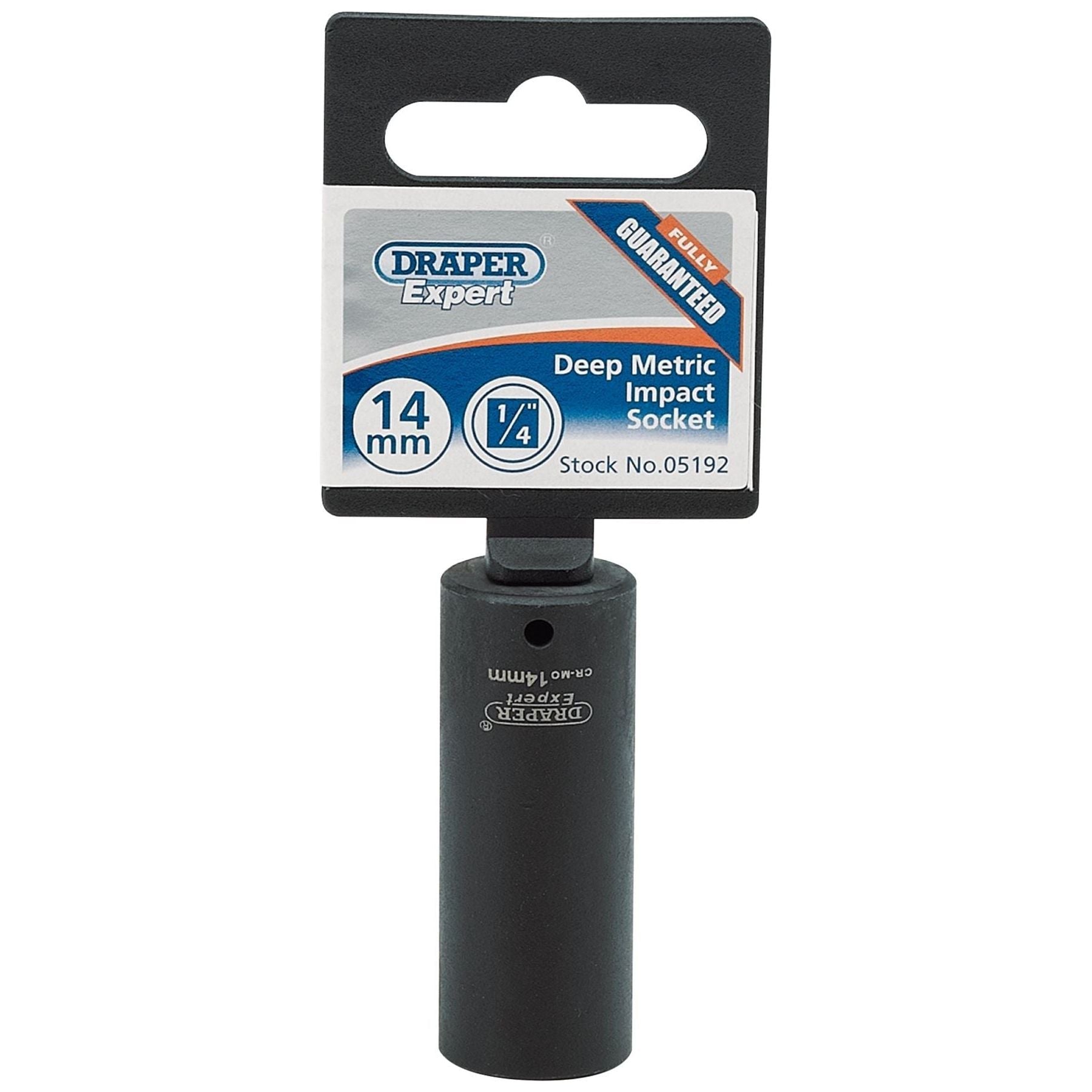 Draper Expert HI-TORQ 6 Point Deep Impact Socket, 1/4" Sq. Dr., 14mm