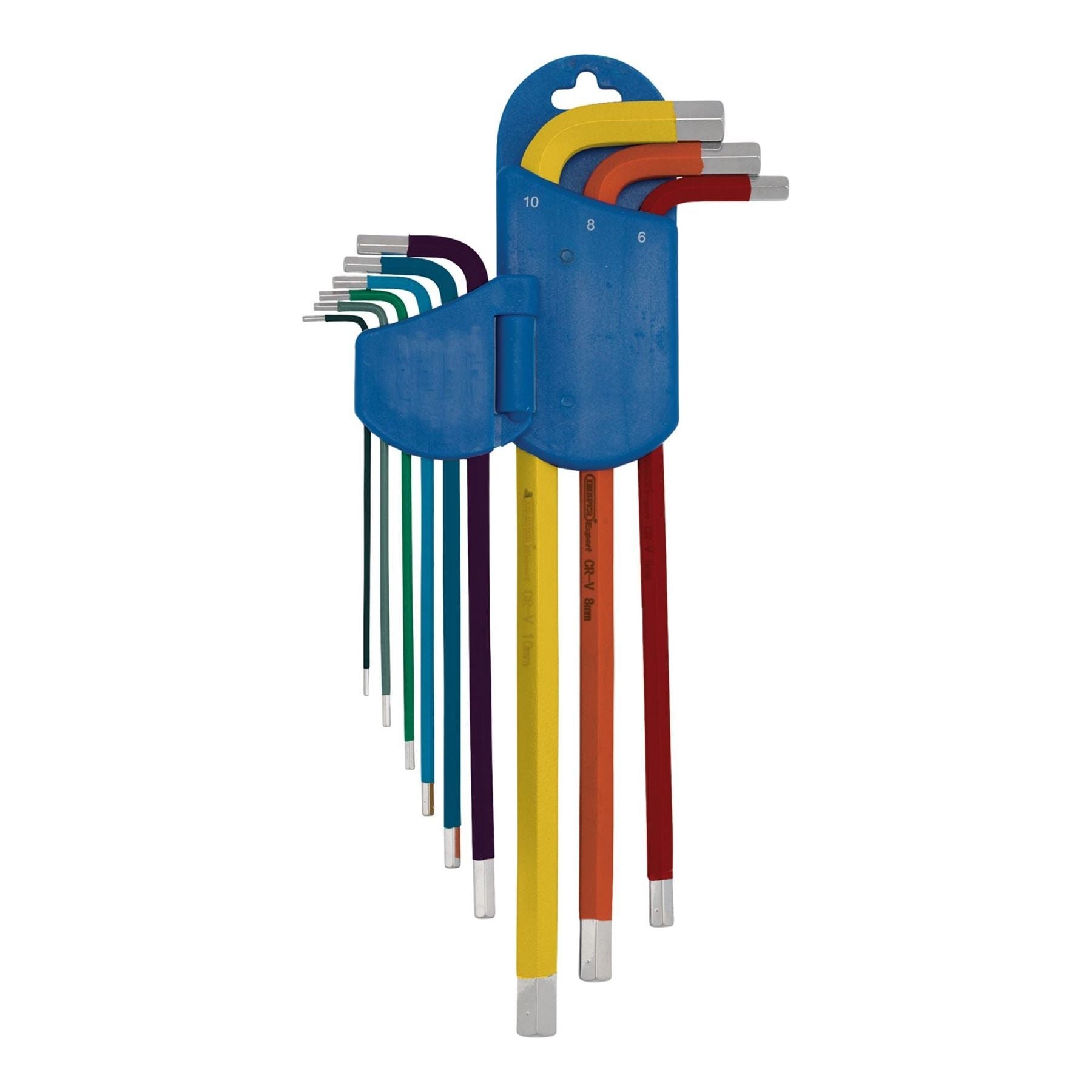 9 x Draper Expert Metric Extra-Long Arm Hex Key Set, Colour Coded Sizes: 1.5, 2.0, 2.5, 3.0, 4.0, 5.0, 6.0, 8.0, 10.0mm