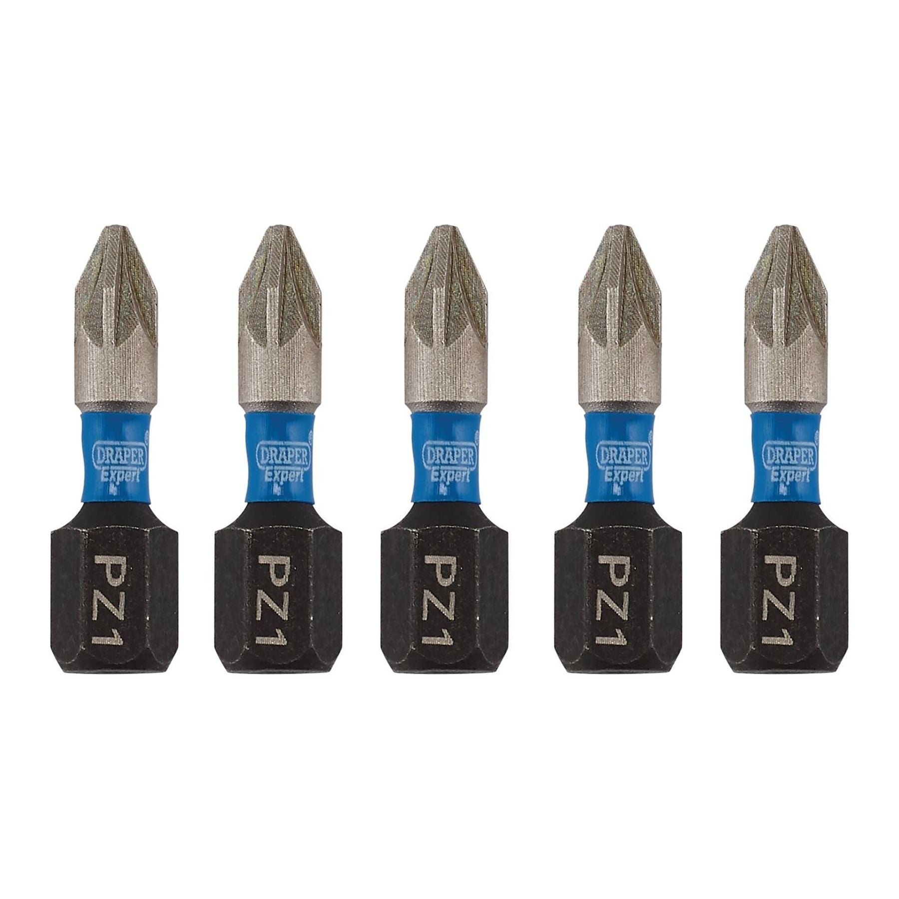 Draper Expert PZ-Type Impact Screwdriver Bits, No.1 x 25mm, 1/4" Hex (Pack of 5)