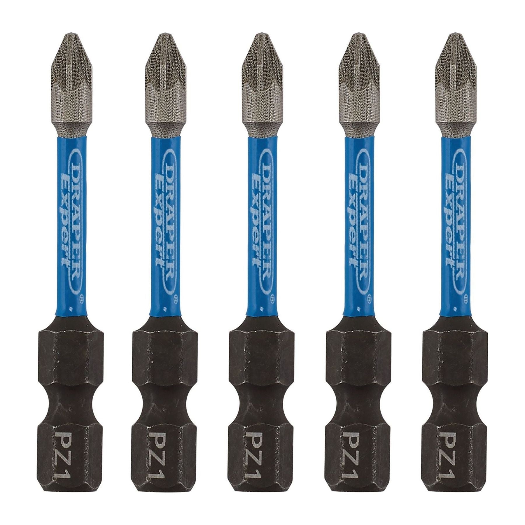 Draper Expert PZ-Type Impact Screwdriver Bits, No.1 x 50mm, 1/4" Hex (Pack of 5)
