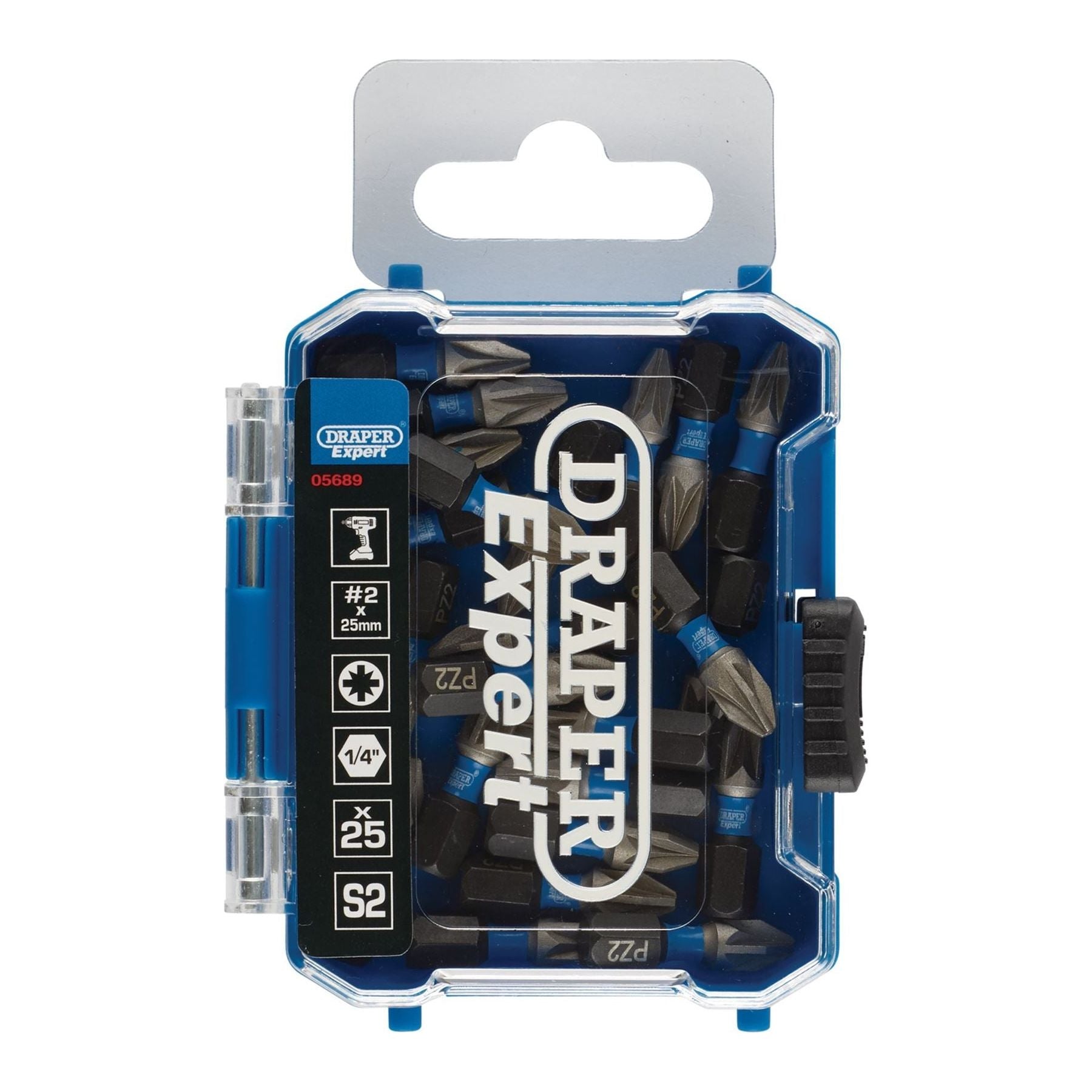 Draper Expert PZ-Type Impact Screwdriver Bits, No.2 x 25mm, 1/4" Hex (Pack of 25