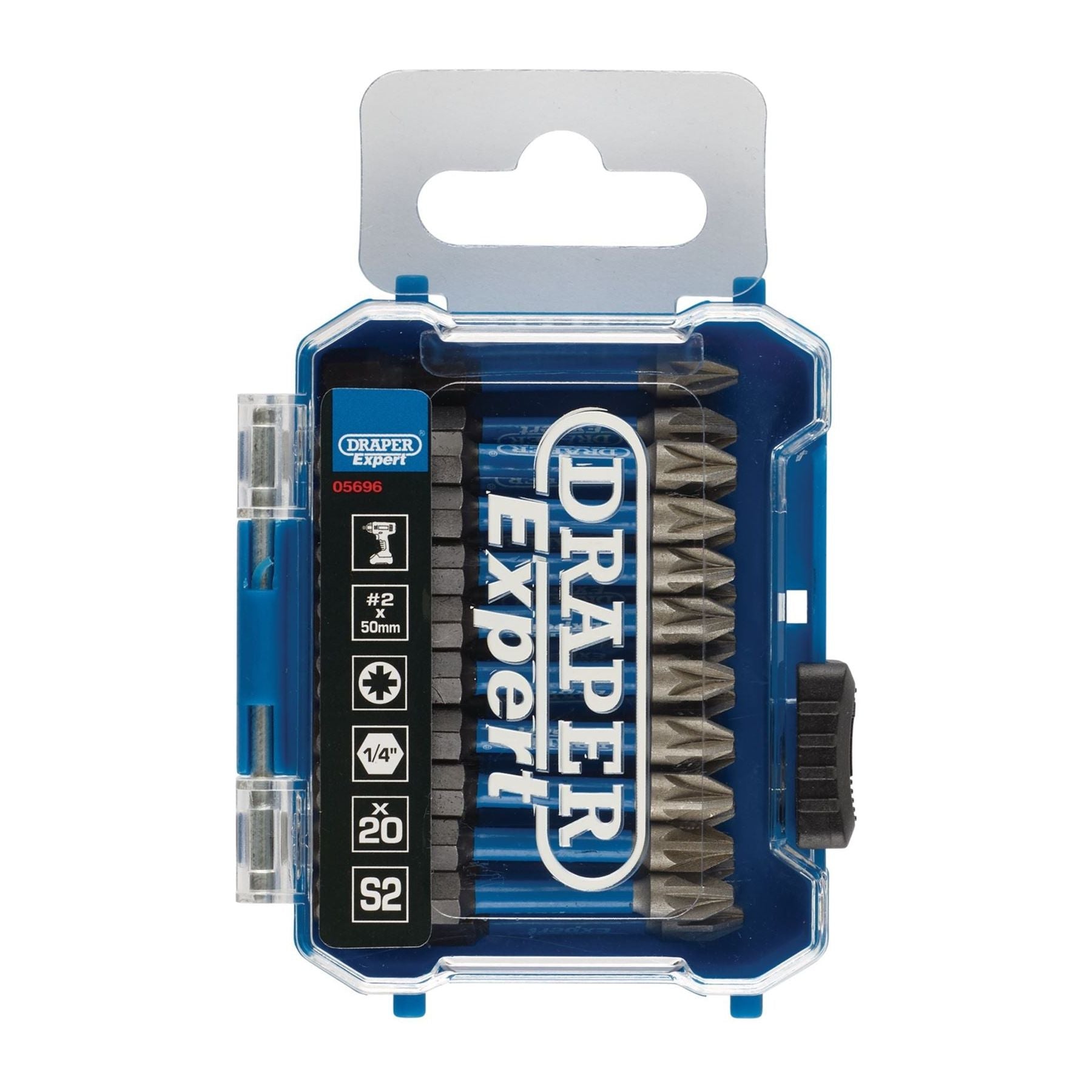 Draper Expert PZ-Type Impact Screwdriver Bits, No.2 x 50mm, 1/4" Hex (Pack of 20