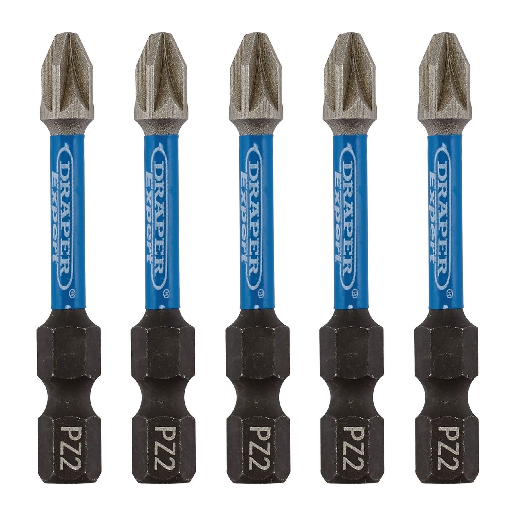 Draper Expert PZ-Type Impact Screwdriver Bits, No.2 x 50mm, 1/4" Hex (Pack of 5)