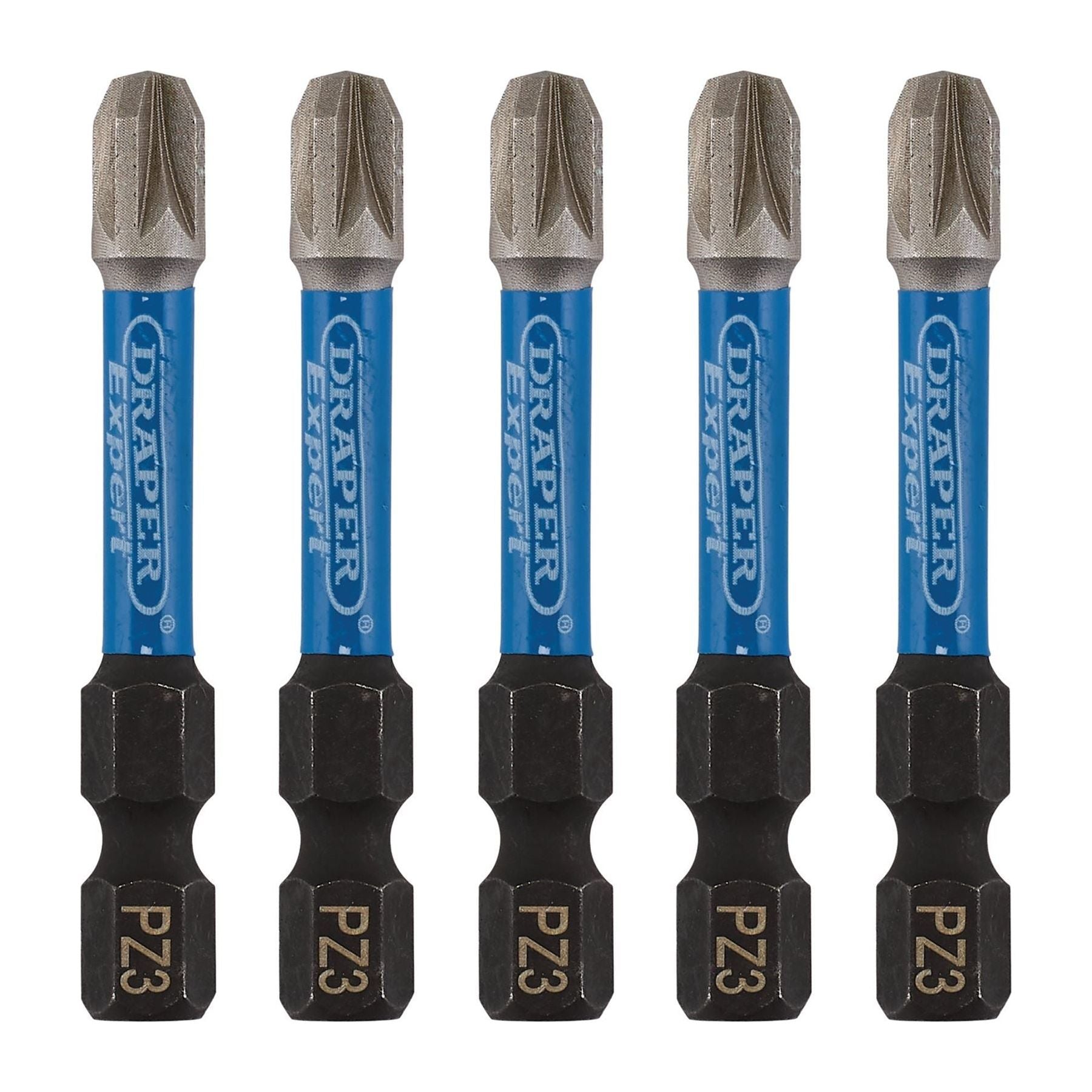 Draper Expert PZ-Type Impact Screwdriver Bits, No.3 x 50mm, 1/4" Hex (Pack of 5)