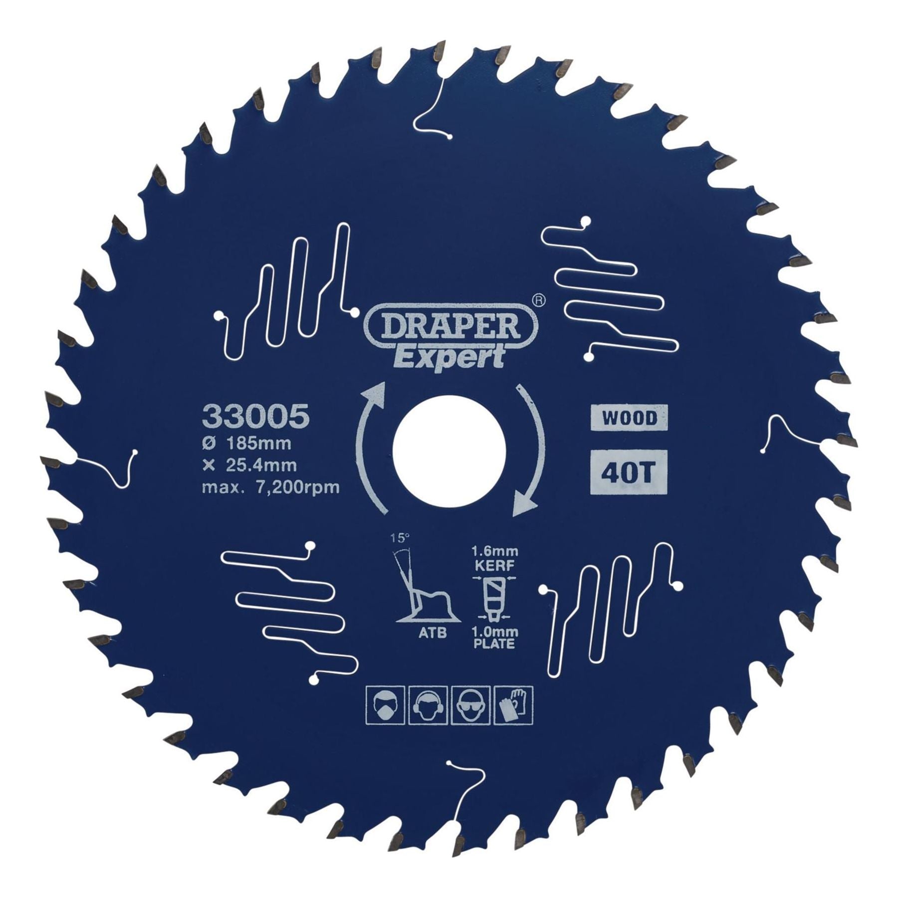 Draper Expert Tct Circular Saw Blade For Wood With Ptfe Coating, 185 X 25.4Mm, 40T