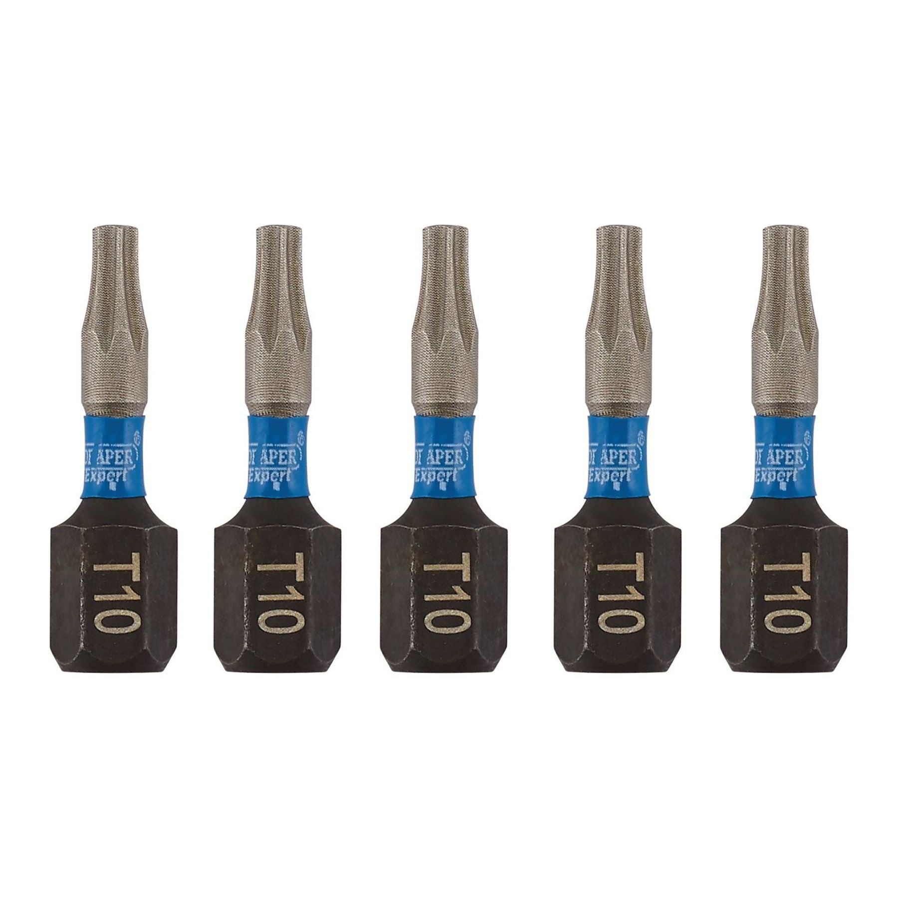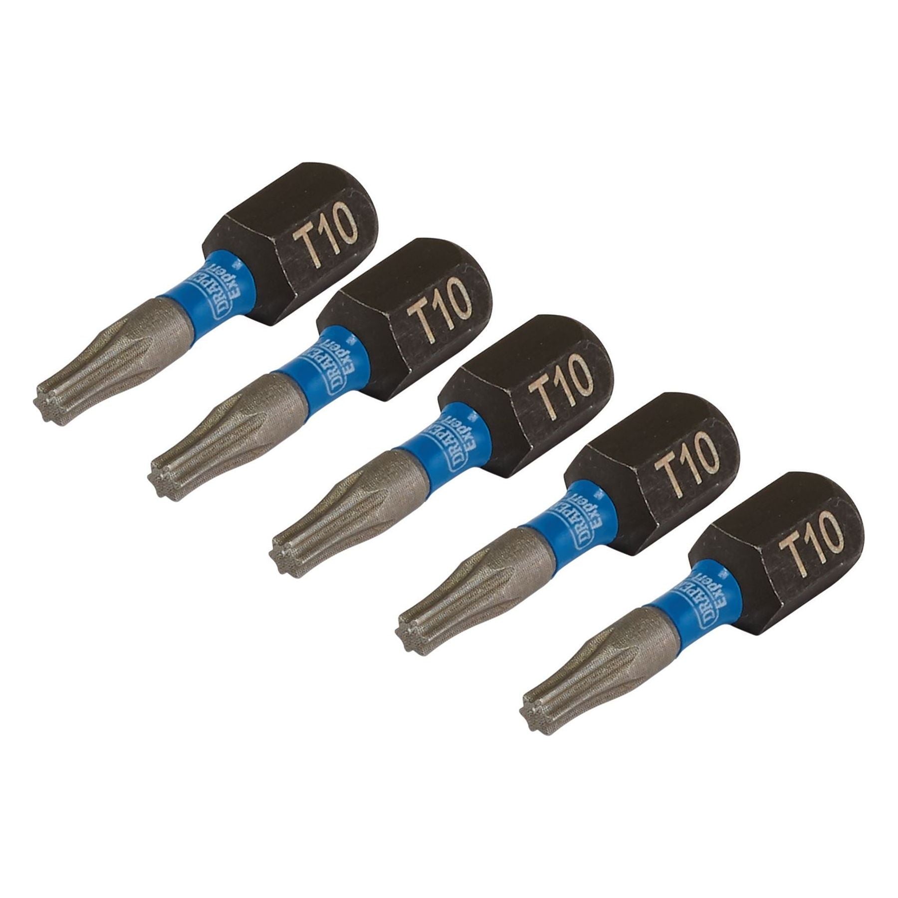 Draper Expert TX-STAR Impact Screwdriver Bits, T10 x 25mm, 1/4" Hex (Pack of 5)