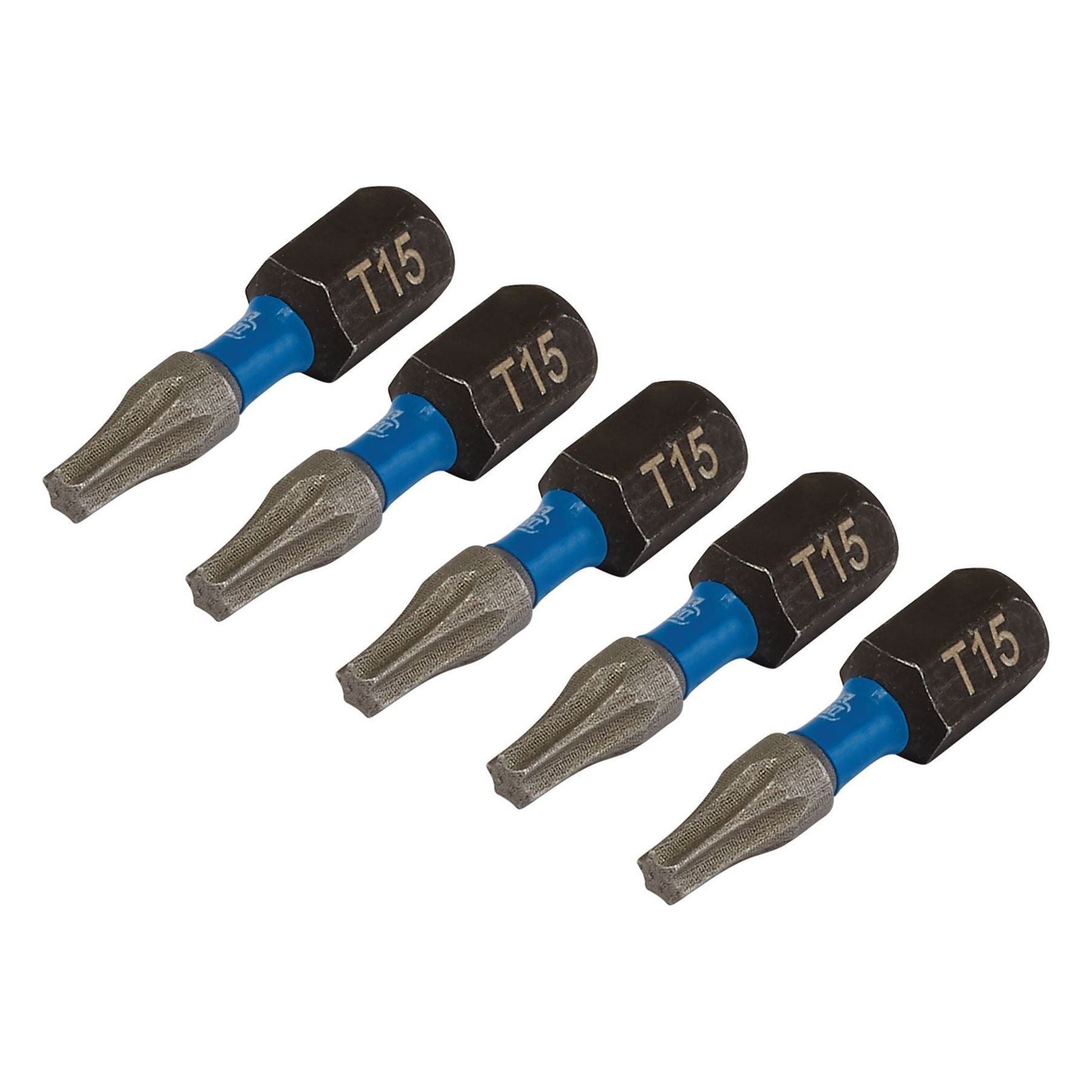 Draper Expert TX-STAR Impact Screwdriver Bits, T15 x 25mm, 1/4" Hex (Pack of 5)