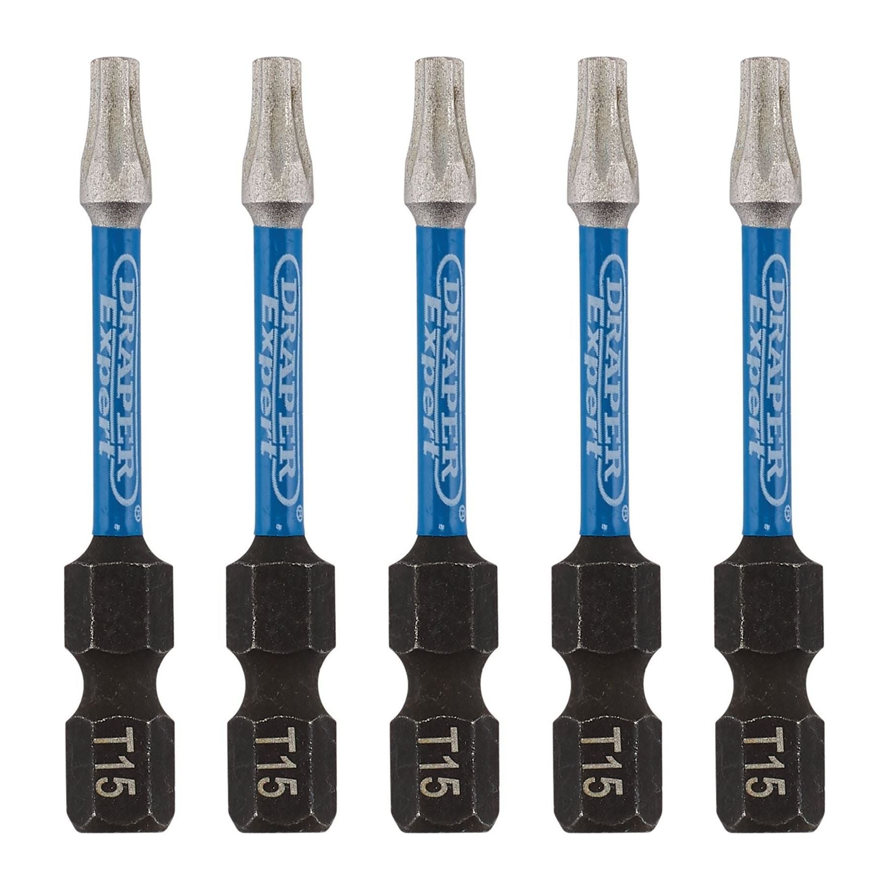 Draper Expert TX-STAR Impact Screwdriver Bits, T15 x 50mm, 1/4" Hex (Pack of 5)