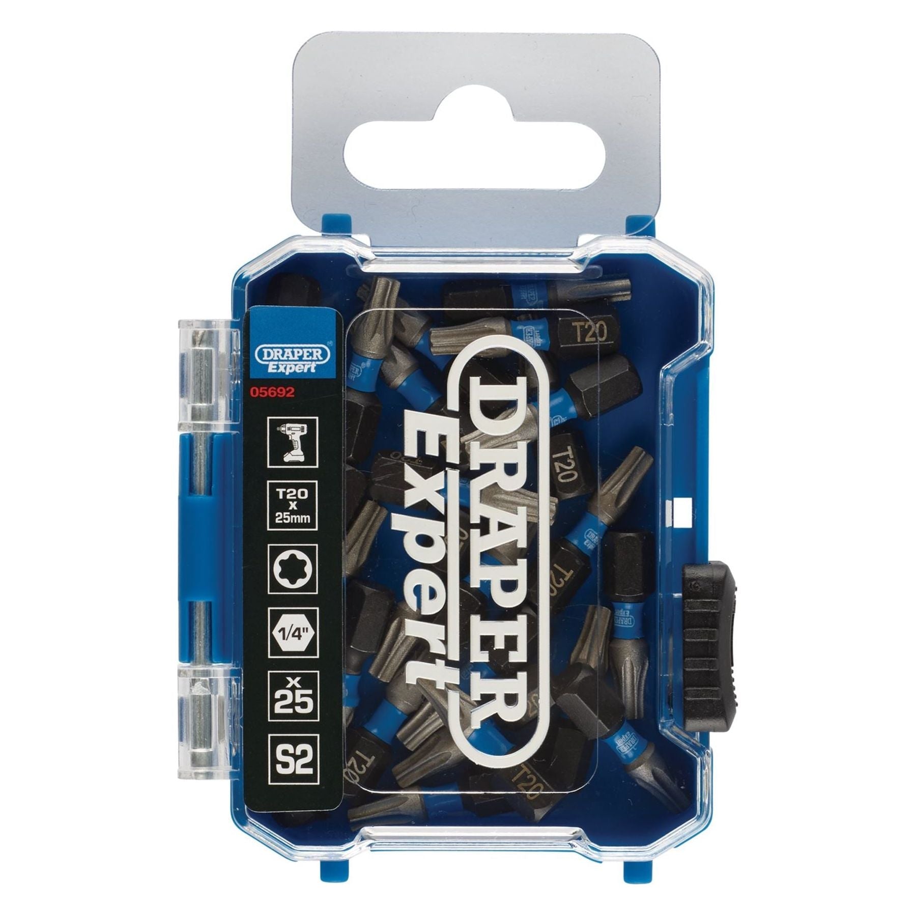 Draper Expert TX-STAR Impact Screwdriver Bits, T20 x 25mm, 1/4" Hex (Pack of 25)