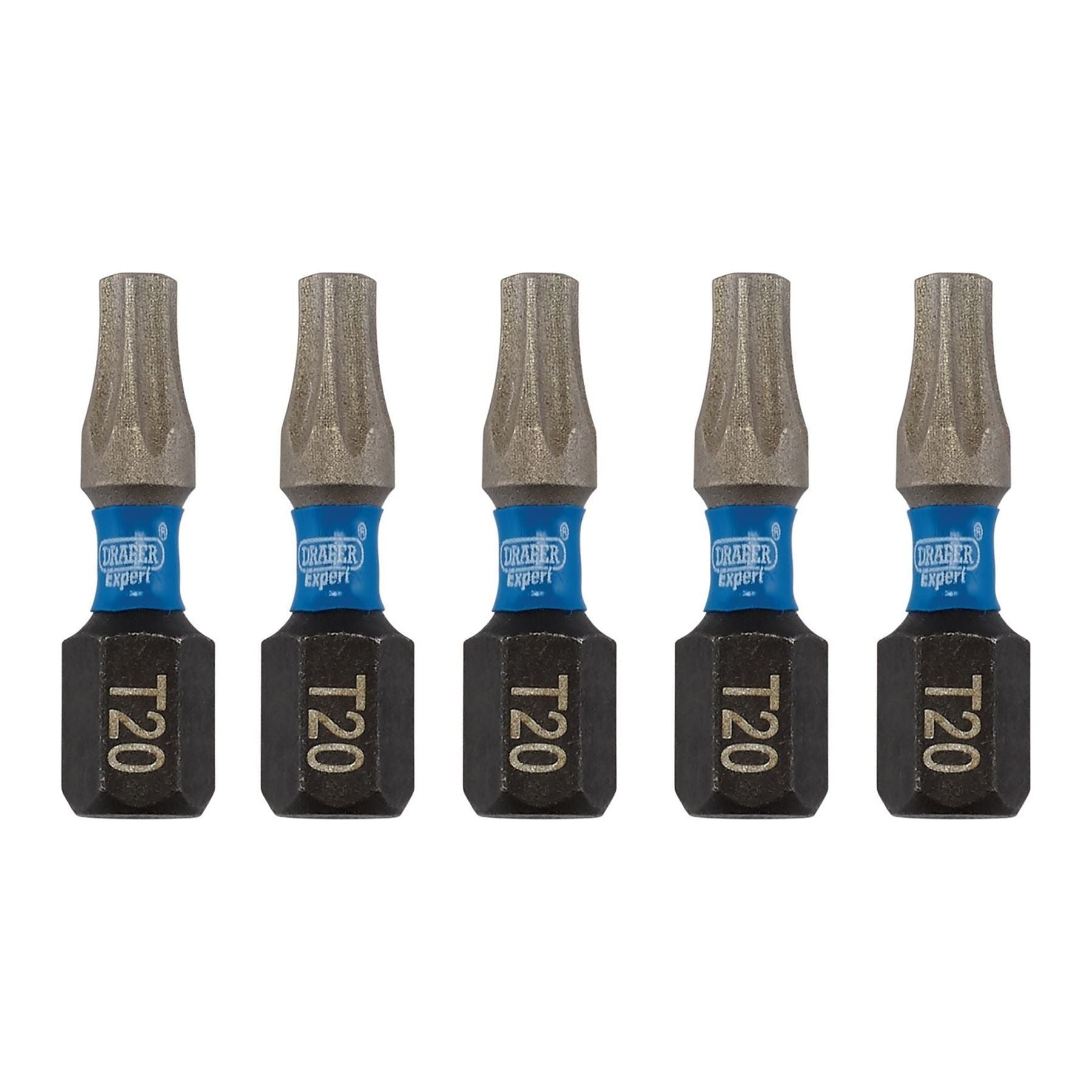 Draper Expert TX-STAR Impact Screwdriver Bits, T20 x 25mm, 1/4" Hex (Pack of 5)