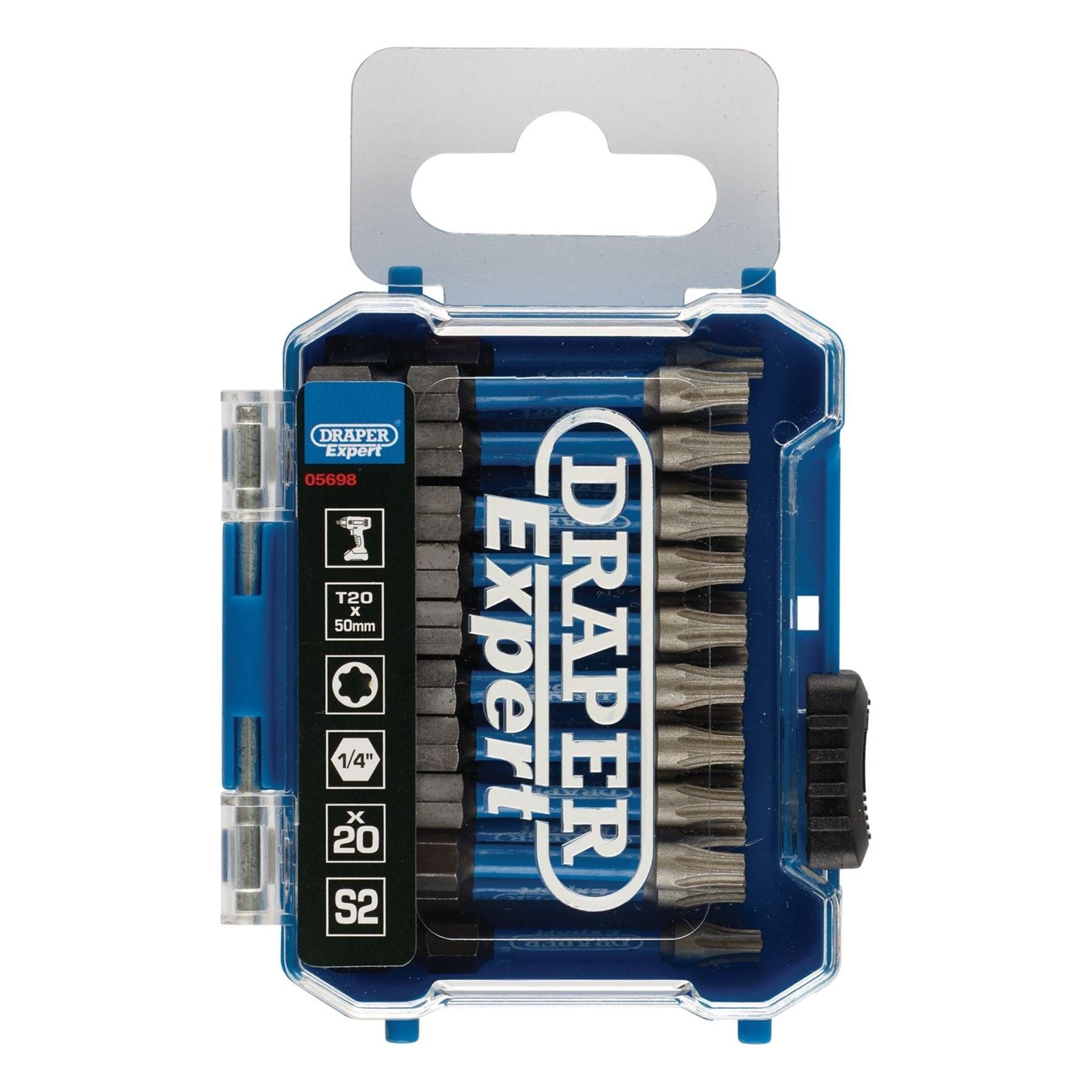 Draper Expert TX-STAR Impact Screwdriver Bits, T20 x 50mm, 1/4" Hex (Pack of 20)